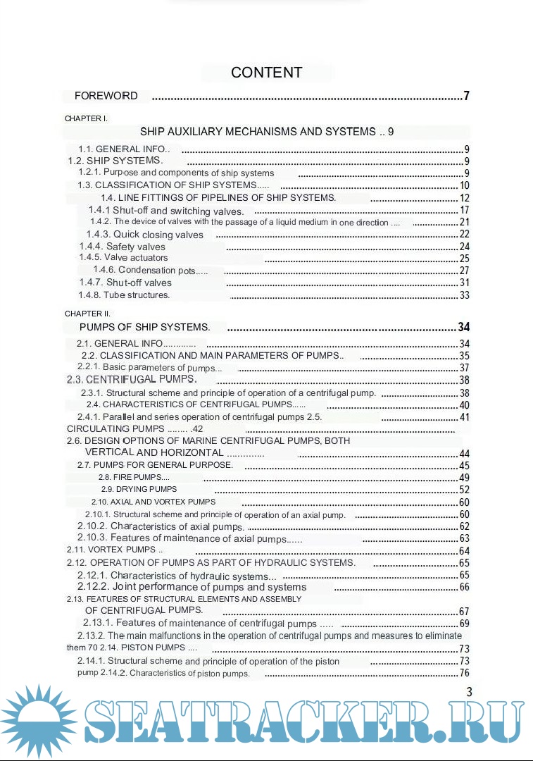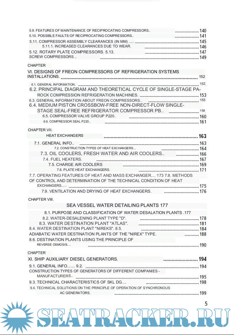 The purpose of the handbook is to give practical advice, a recommendation to the ship's specialist to help understand more deeply and broadly why it is necessary to perform certain actions when servicing a particular mechanism, to help independently expand knowledge on the operation of auxiliary mechanisms.
