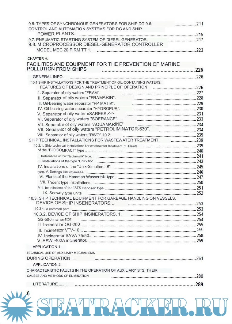 In this handbook, attention is paid to auxiliary equipment related to the requirement of MARPOL 73/78 for the prevention of pollution of the sea and the aquatic environment.