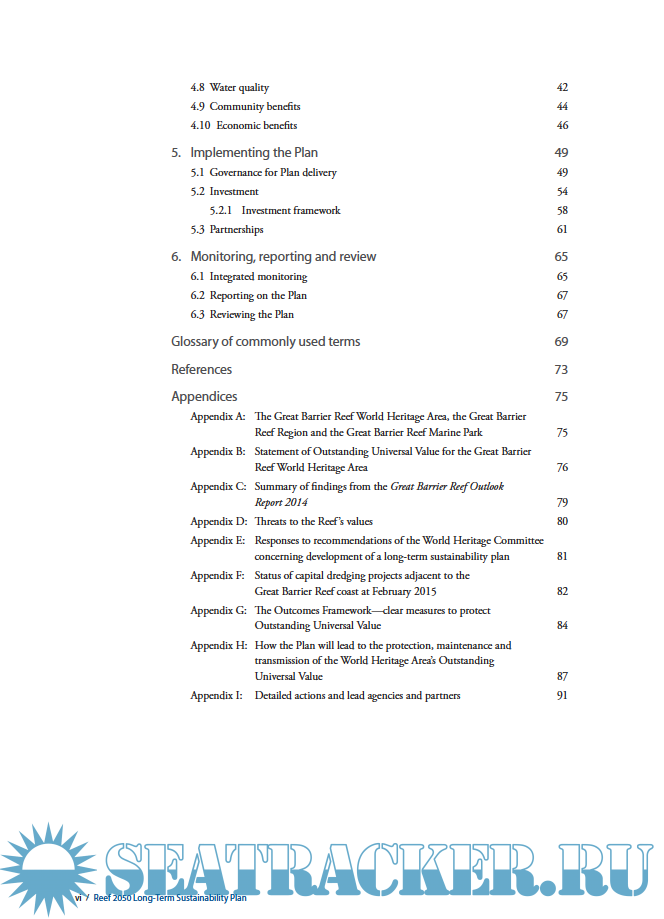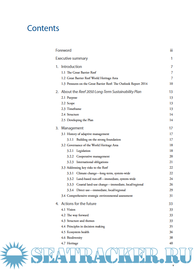 Year: 2015 Language: English Author: Commonwealth of Australia Genre: Practical guide Publisher: Commonwealth of Australia Format: PDF Quality: OCR without errors Pages count: 111 Description: Australians are passionate about the Great Barrier Reef. It is one of the world’s greatest natural assets. Our vision is to ensure the Great Barrier Reef continues to improve on its Outstanding Universal Value every decade between now and 2050 to be a natural wonder for each successive generation. Traditional Owners have cared for the Reef for thousands of years and Australia is committed to its ongoing protection. The Reef 2050 Long-Term Sustainability Plan is based on science and the lessons learnt from managing the Reef over the past four decades.
