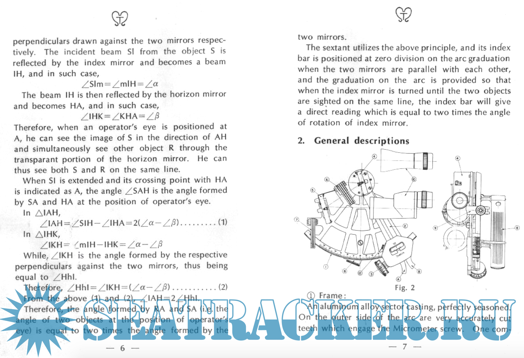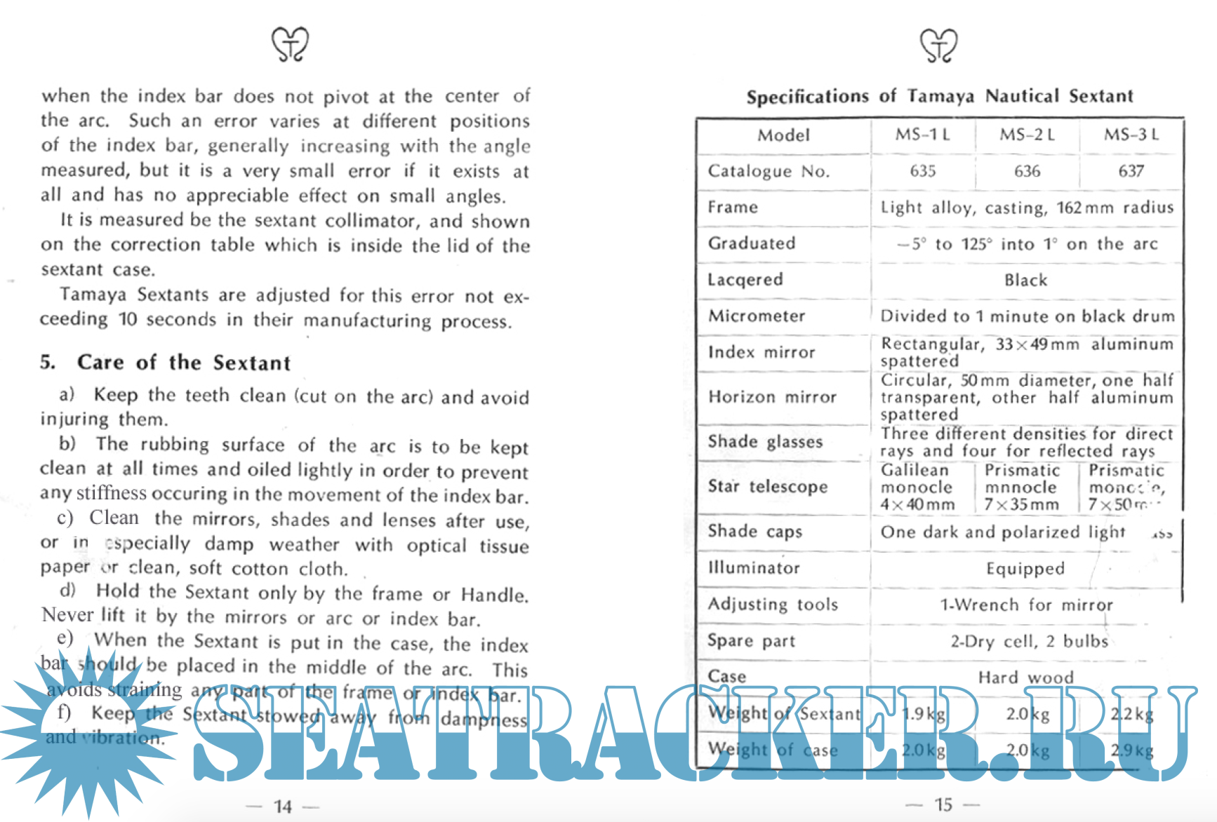 Description: Tamaya Sextant Manual, description and istructionds for use.