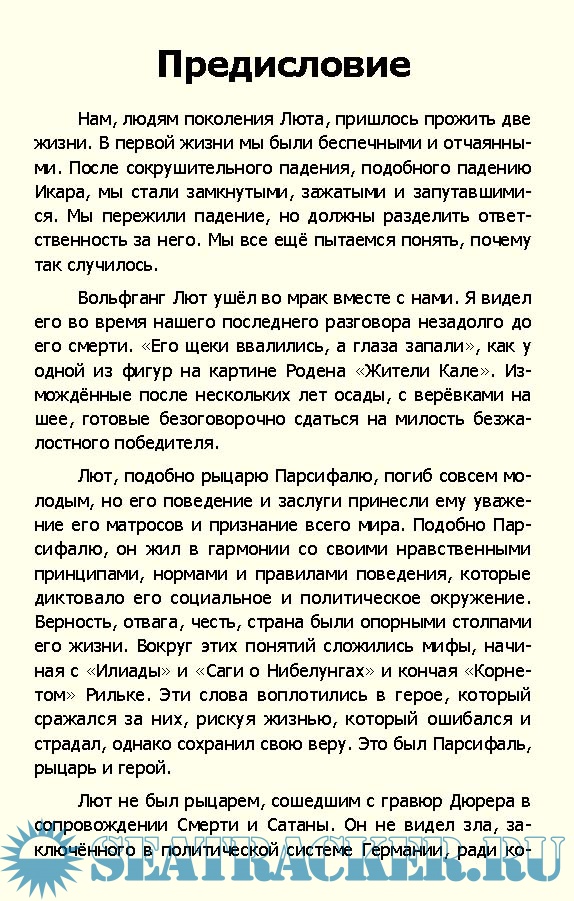 Описание: В книге представлена биография второго по результативности подводника Кригсмарине Вольфганга Люта, который мало известен за пределами Германии. И не удивительно – Лют нарастил свой счёт не в суровых водах Северной Атлантики, а гораздо южнее, имея дело с противником, мало способным оказать сопротивление, причём весьма значительную часть его жертв составили нейтральные суда. То есть его мастерство из количества потопленного тоннажа совершенно не очевидно. Тем не менее, американский военный моряк Джордан Воуз не скрывает своей симпатии к фашистскому подводнику, живописуя его «подвиги» иногда в таком святочно-сусальном стиле, что не замечает многих допущенных «по теме» грубых ошибок. Однако книга несколько приоткрывает картину «войны за тоннаж», которую вели немецкие подводники на отдалённых театрах Второй Мировой, и потому представляет собою определённую ценность.