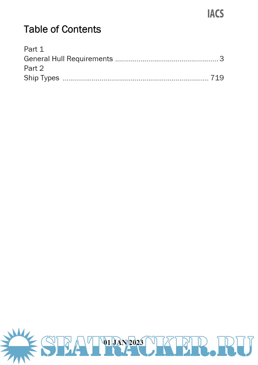 This volume provides the requirements for classification other than those covered in IACS Common Structural Rules for Bulk Carriers and Oil Tankers