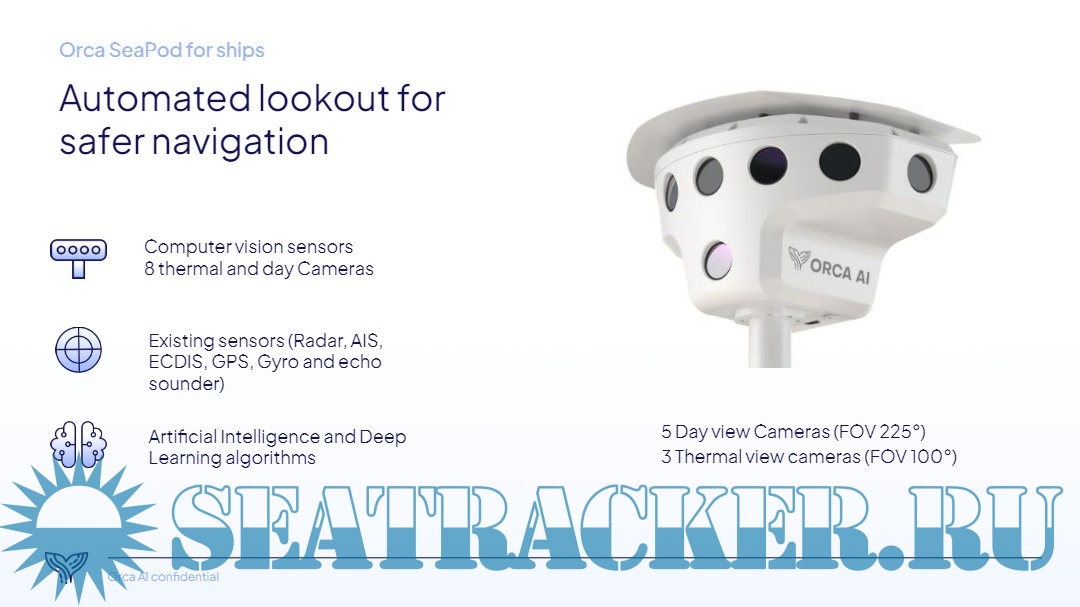 Orca AI’s SeaPod leverages advanced computer vision and deep learning algorithms to detect, track, and classify targets that may pose a risk to the vessel or violates the company's SMS.
