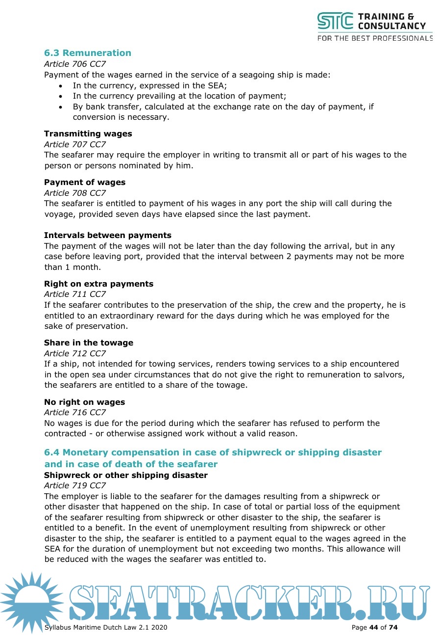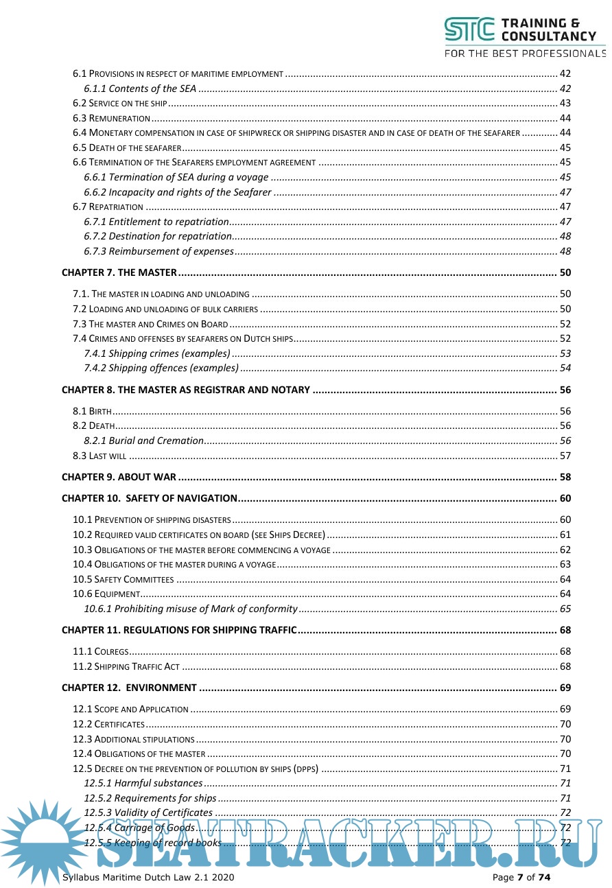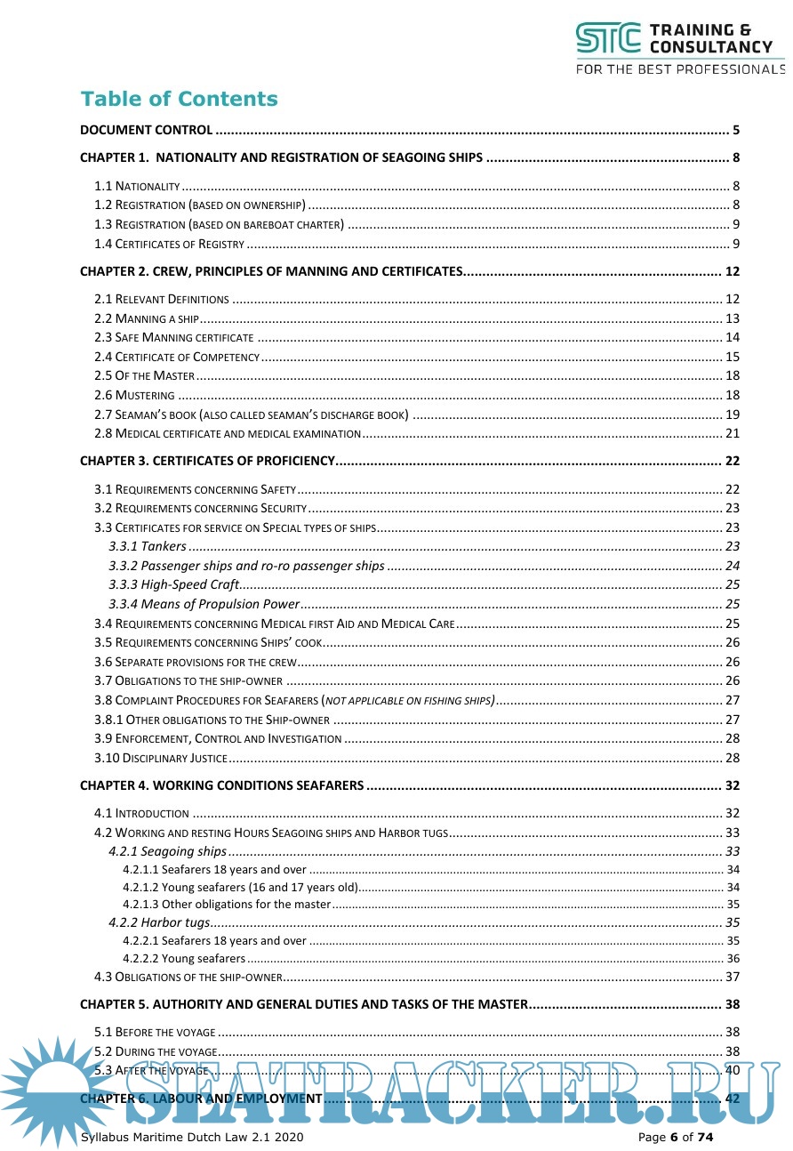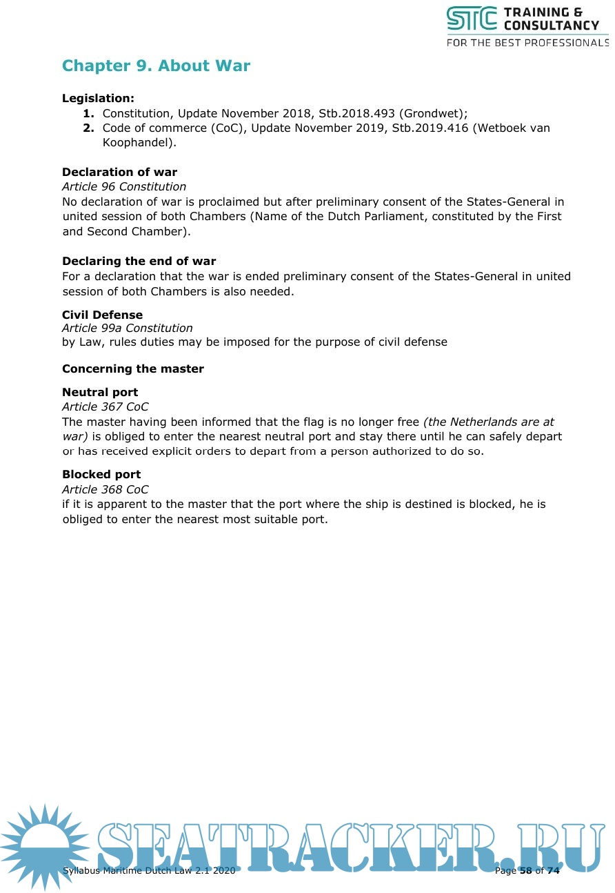 Description: The purpose of this syllabus is to give the Master sufficient actual working knowledge of the major Dutch maritime legislation in order to enable him to fulfil all his tasks and