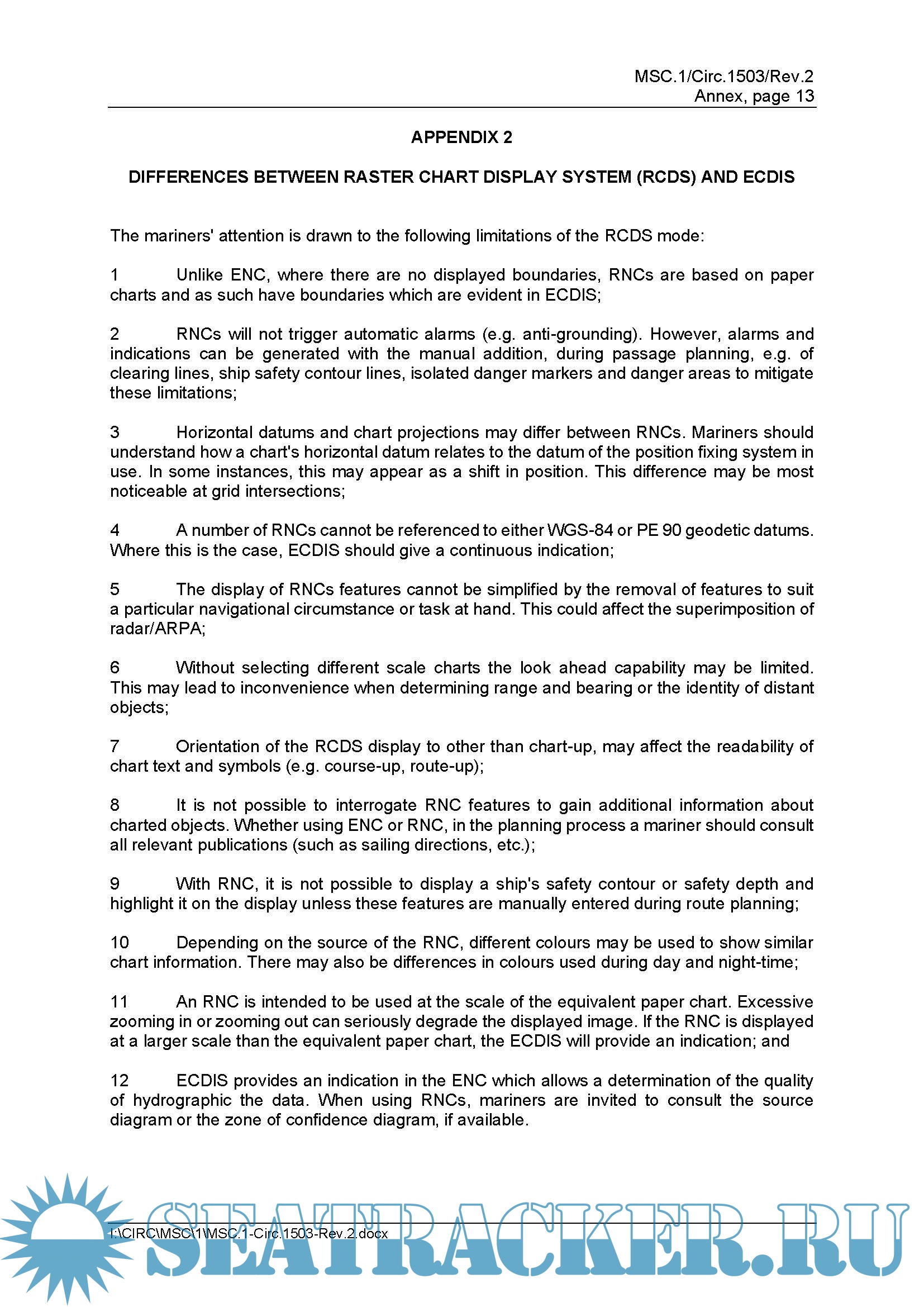 E Differences between raster chart display system (RCDS) and ECDIS