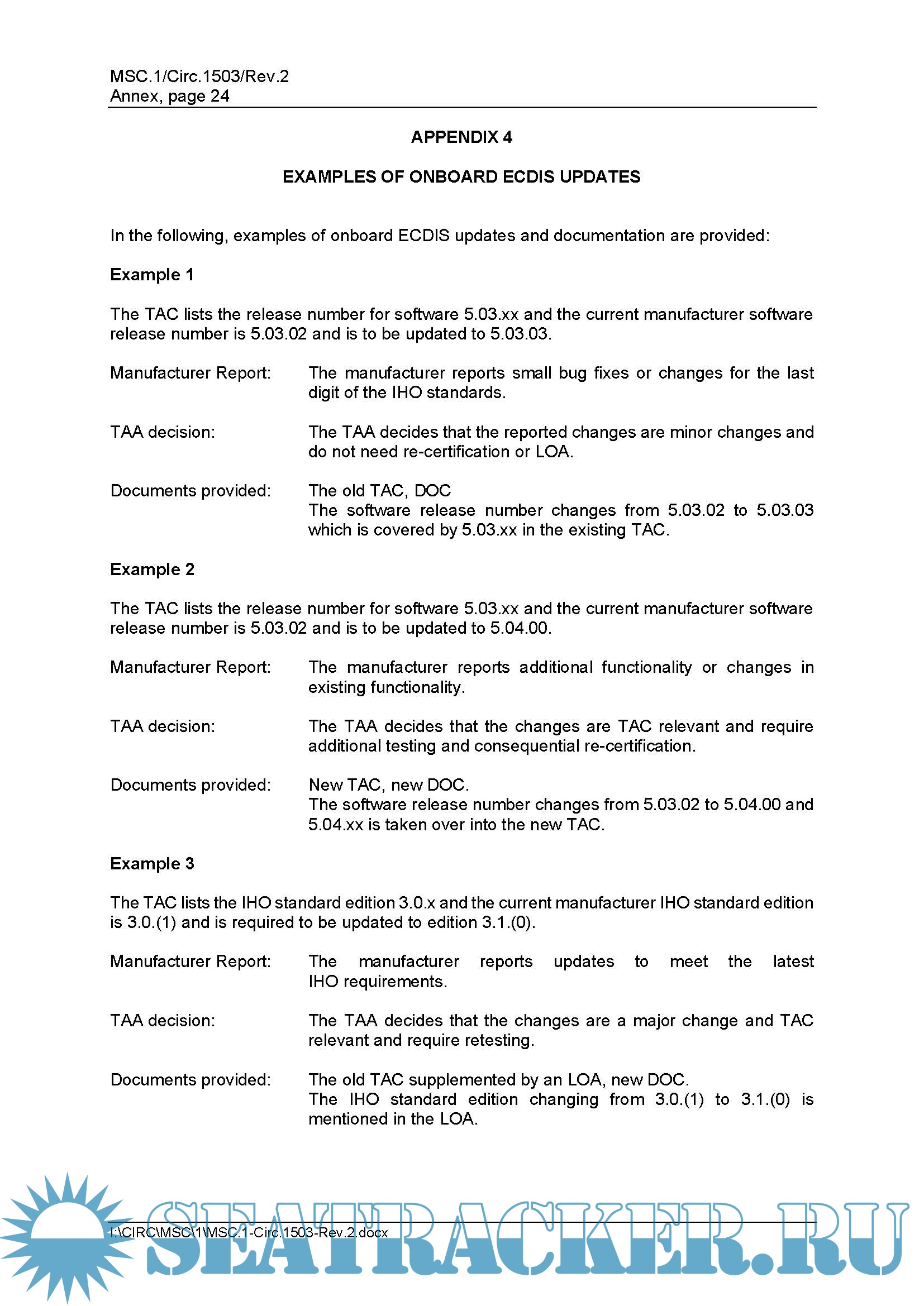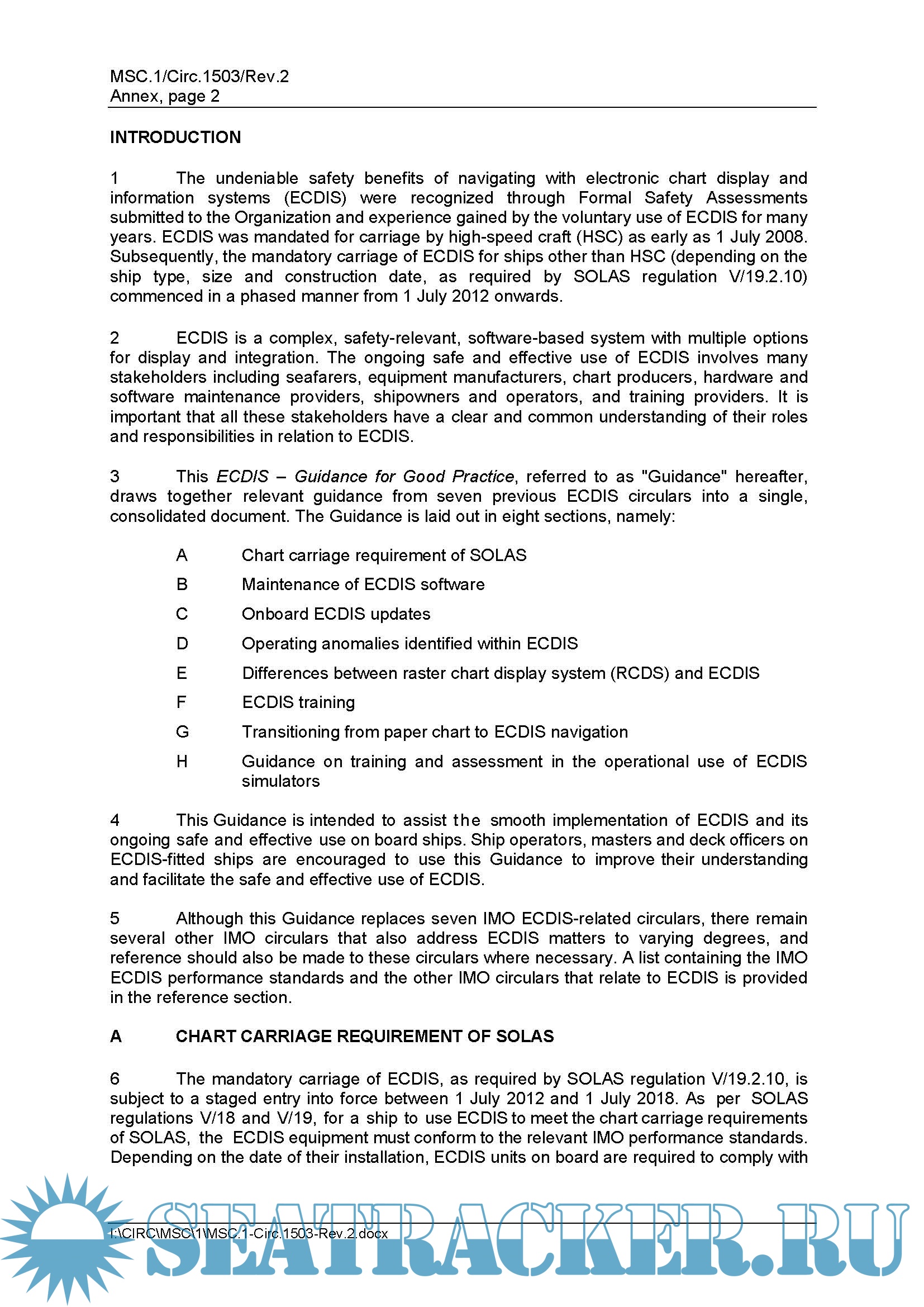 Description: IMO MSC.1-Circ.1503-Rev.2 ECDIS Guidance for Good Practice. The consolidated guidance termed "ECDIS - Guidance for Good Practice" is set out in the annex to this circular. Ship operators, masters and deck officers on ECDIS-fitted ships are encouraged to use this Guidance to improve their understanding and facilitate safe and effective use of ECDIS.