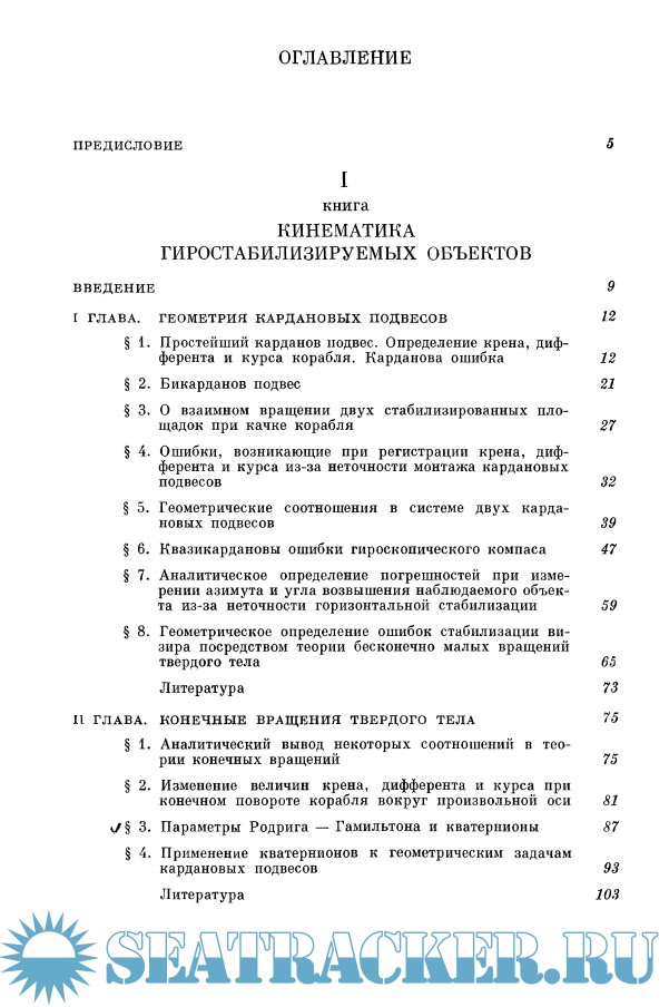 Описание: В монографии излагаются теоретические основы инерциальной навигации - определения ориентации и местоположения подвижных объектов без какой-либо информации извне, исходя исключительно из показаний чувствительных элементов механической природы, находящихся на самом объекте. Сюда относятся свободные гироскопы, гиромаятники, гиростабилизаторы, гирокомпасы, гироскопические и иные измерители кажущихся ускорений (ньютонометры). Описание теории поведения этих устройств в условиях относительного движения, главным образом применительно к задачам инерциальной навигации, составляет одно из центральных мест монографии. Использование гироскопической стабилизации на борту подвижных объектов в условиях их пространственного углового движения приводит к необходимости рассмотрения сложных геометрических и кинематических задач. В монографии приведены общие методы и примеры решения таких задач различными приемами, в том числе посредством матриц, параметров Родрига - Гамильтона и Кейли - Клейна и алгебры кватернионов. К собственно инерциальной навигации относится рассмотрение теории поведения конкретных схем, сочетающих в себе гироскопы, ньютонометры и счетно-решающих устройств, а также исследование дифференциальных уравнений, решение которых в конечном счете определяет местоположение объекта и его курс на земной сфере (система пространственной инерциальной навигации неустойчива).