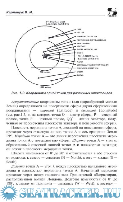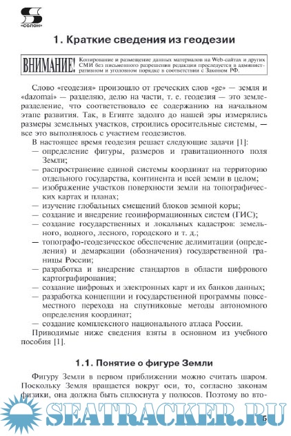 Год выпуска: 2016 Язык: русский Автор: Карлащук Василий Иванович, Карлащук Сергей Васильевич Жанр: Техническая литература Издательство: Солон-Пресс Издание: Библиотека инженера Формат: PDF Качество: Изначально компьютерное (eBook) Количество страниц: 283 Описание: Книга посвящена описанию спутниковых радионавигационных систем GPS-NAVSTAR (США) и ГЛОНАСС (Россия) и их применению в различных системах определения координат. В книге приведены краткие сведения из геодезии, необходимые для понимания задач, решаемых при определении местоположения различных объектов, и описание навигационных программ OziExplorer, НАВИТЕЛ НАВИГАТОР, ГИС Русса, PocketGPS Pro, ПалмГИСGPS и др., широко используемых в переносных и карманных компьютерах, коммуникаторах и навигаторах с функцией учета дорожной обстановки (включая пробки), а также популярный картографический редактор MapEdit для создания собственных карт (включая маршрутизируемые) и их представления в различных картографических форматах. Книга будет интересной для автомобилистов, любителей пешего, горного, водного и лыжного туризма, для охотников, рыболовов, пилотов-любителей, судоводителей малых морских судов, для лиц, занимающихся мониторингом транспортных средств и др. Книга будет полезной также для студентов и учащихся геодезических, радиотехнических, геологоразведочных, морских и других учебных заведений.