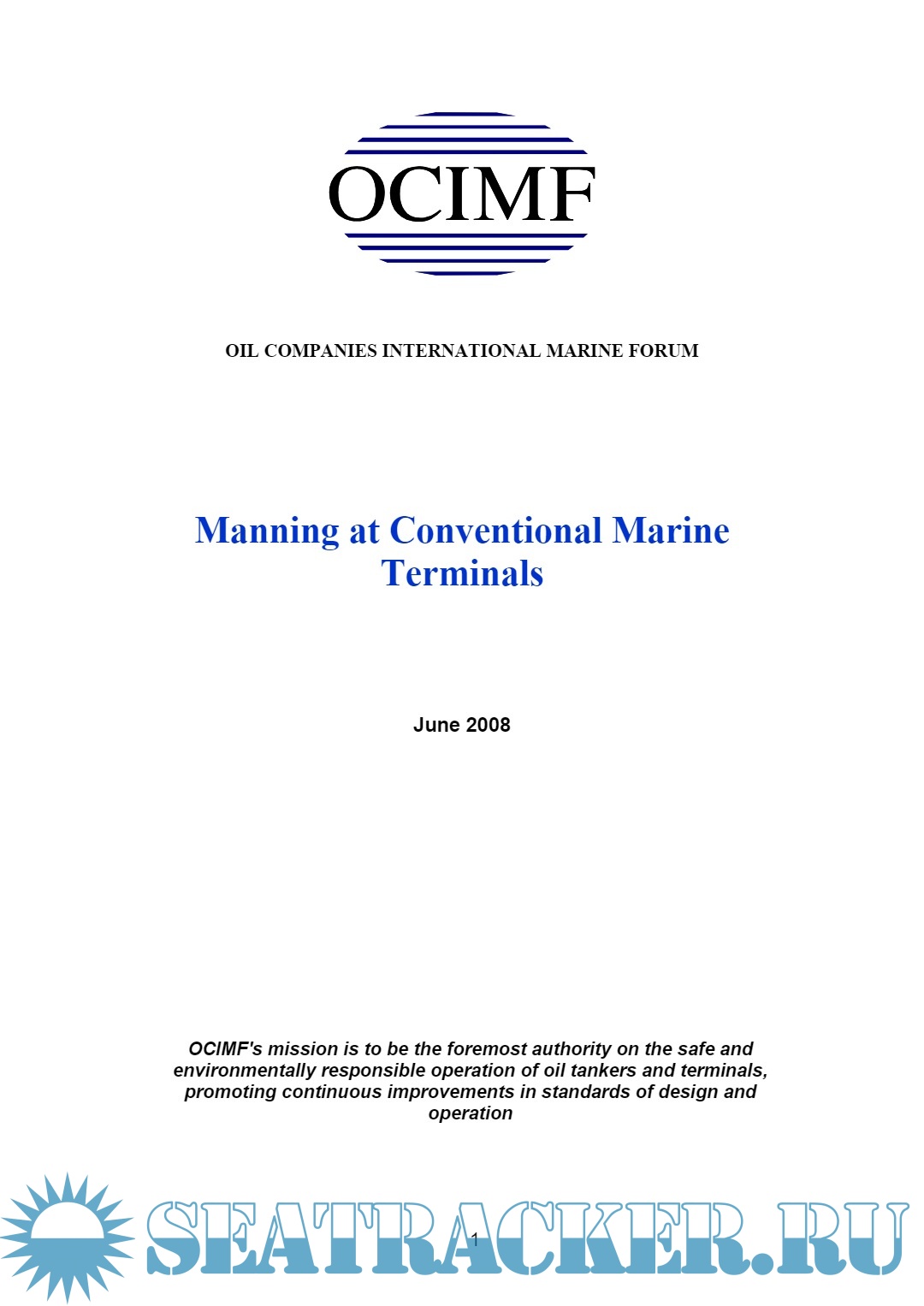 Year: 2008 Language: English Author: OCIMF Genre: Guide Publisher: OCIMF Format: PDF Quality: eBook Pages count: 28 Description: There is a growing industry trend towards rationalising the manpower employed at marine terminals. Terminals are looking at achieving reductions in manning levels by De-manning berths when ships are not alongside, reducing manning during the time when a ship is alongside, or by having personnel only attending the berth when needed for specific operations that require manual intervention or surveillance. The purpose of this paper is not to advocate a standard for jetty manning but to provide guidance to ensure that terminal operations are carried out safely irrespective of the manning philosophy adopted. The paper will look at the tasks normally carried out at the berth by terminal staff and other associated operators, and consider the process required to determine an adequate level of berth supervision during the various stages of its operation. The paper will also provide guidance on equipment that can be considered for modern jetties and docks. The paper uses the operator owned terminal with a permanently manned jetty as the baseline case.