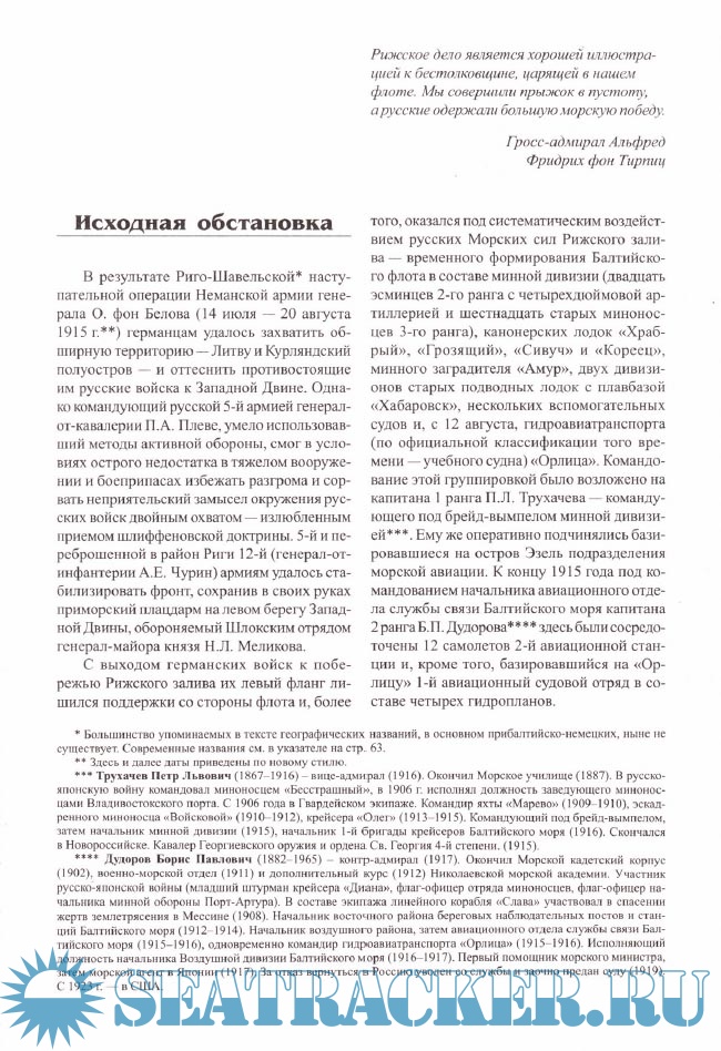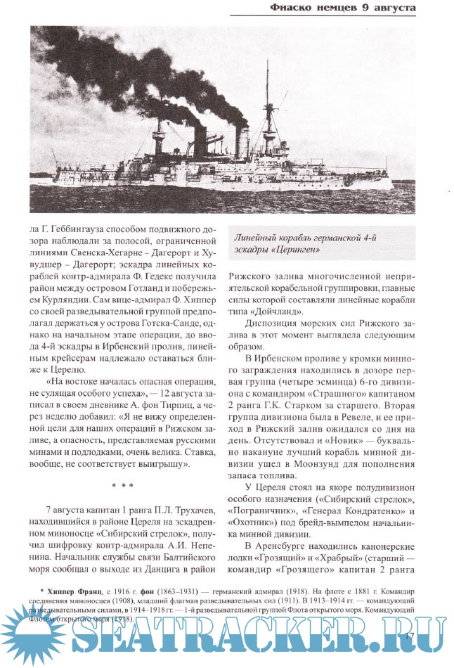 Только в октябре 1917 года, когда деморализованная русская армия сдаст немцам Ригу, эскадры Флота открытого моря вновь появятся у Моонзундских островов.