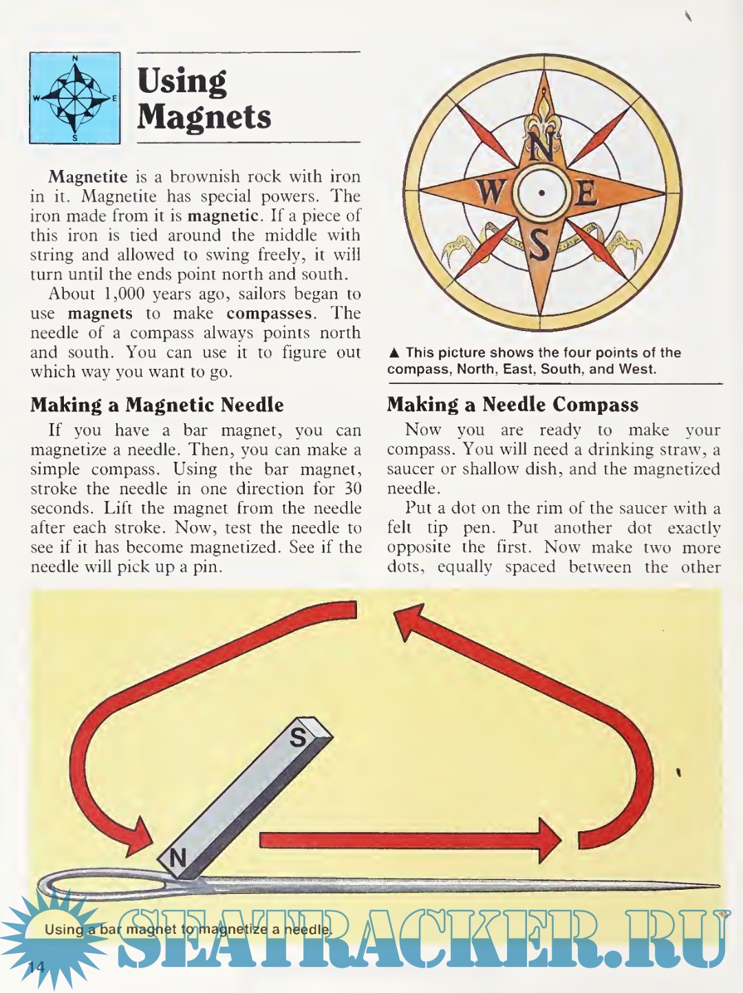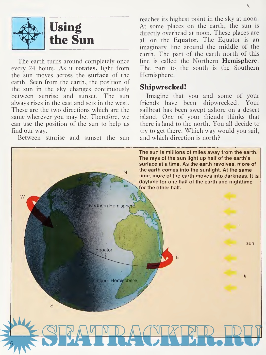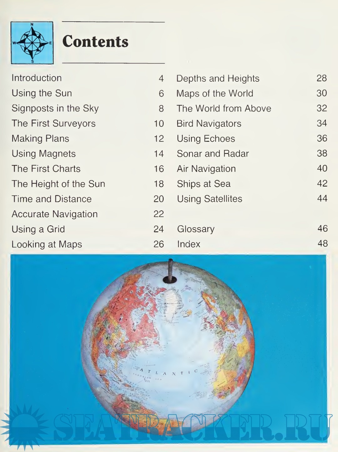 Year: 1986 Language: English Author: Michael Pollard Genre: Textbook Publisher: Schoolhouse Edition: 1 ISBN: 0-8086-1043-0 Format: PDF Quality: Scanned pages + text layer Pages count: 50 Description: When the first sailors set out to explore the world, they sailed along the coast. They felt safe because they were never far from land. Later, when they sailed off across the ocean, these first sailors soon lost sight of the land. They might sail for days or even weeks only seeing the sea and the sky. These first explorers had nothing to help them find their way. Some animals find their way over great distances without any help at all. They use their instinct, which is a natural way of doing things that all animals have. When birds fly to warmer countries in the winter months, this is called migration. Caribou, or reindeer, also migrate southwards from the Arctic in search of food. Even some butterflies fly hundreds of miles to lay their eggs. People do not have the same instinct as animals. Over thousands of years we have learned how to navigate, or find our way, with maps and instruments. Three things are necessary to navigate well. First, you must know where you are. Then, you must know the place or position you want to reach. You must also know the direction to take in order to get there. This book tells the story of how people learned to navigate. We are going to start like the first explorers. These sailors had nothing to help them. They had, however, seen that the sun rose on one side of the sky every morning. It moved across the earth and set on the other side in the evening. Could they use the sun to point them in the right direction?