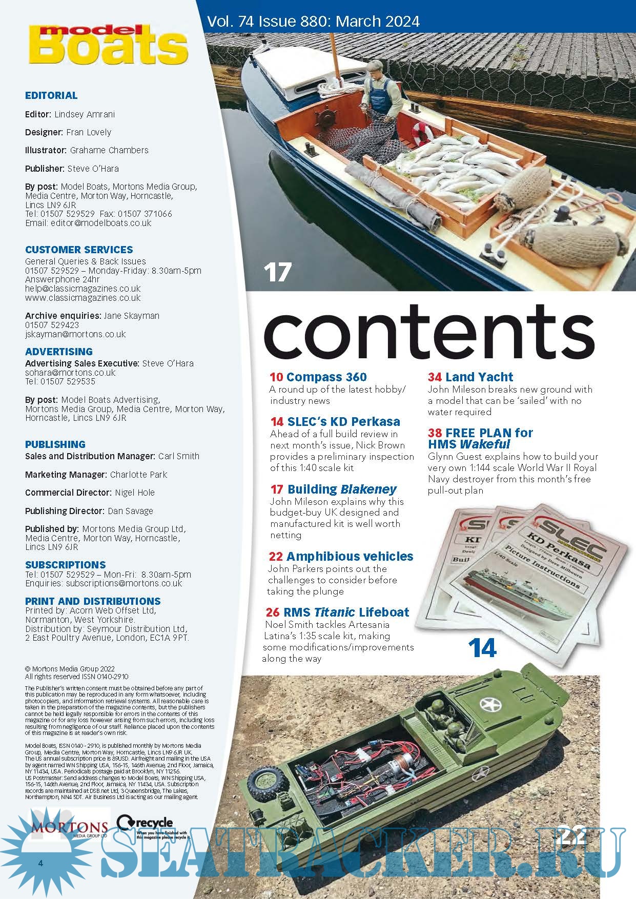 Year: 2024 Language: English Author: Lindsey Amrani (Editor) Genre: Periodical (magazine) Publisher: https://www.modelboats.com Edition: Volume 74 No.880 March, 2024 Format: PDF Quality: eBook Pages count: 92 Description: Model Boats magazine is a practical and informative read for those with a love for the hobby. It covers the latest news and views from the various clubs and associations around the country, useful hints, tips and step by step guides for those interested in the art of constructing a model boat as well as tests and recommendations of new boats and tools. Floating along behind these are great special features examining in depth different models from narrowboat to destroyer!