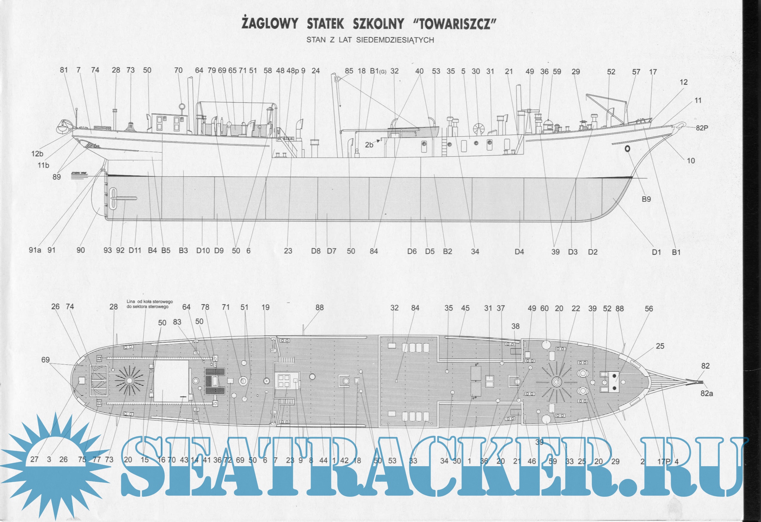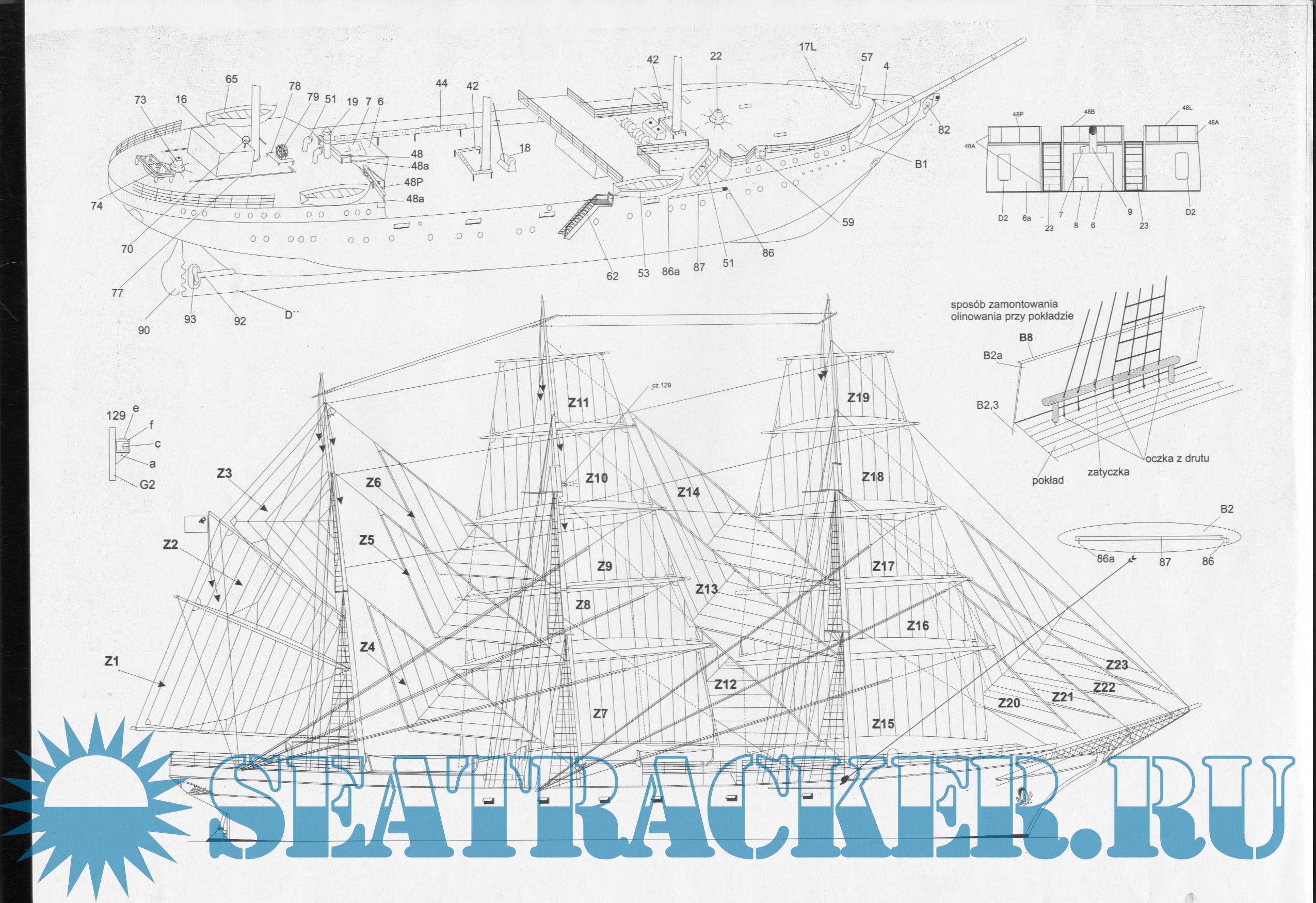 22 листа цветных выкроек и инструкций для изготовления бумажной модели трехмачтового барка ''Товарищ'' в масштабе 1:100Скриншоты
