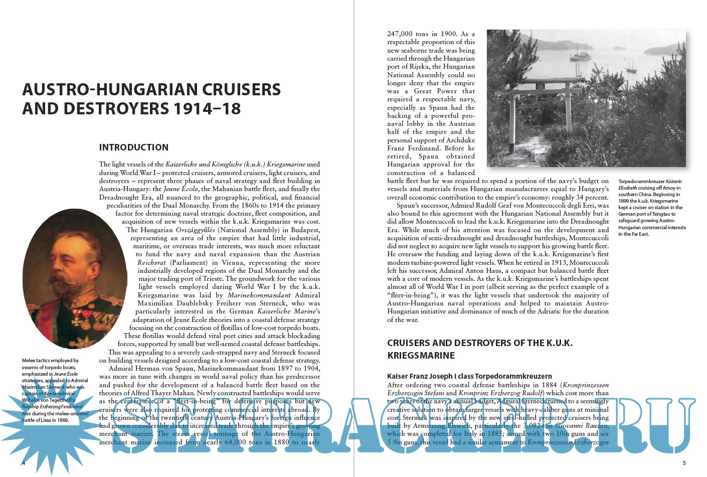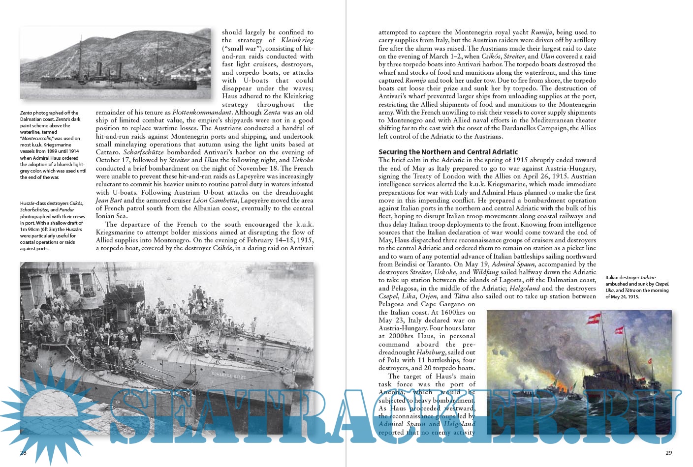 Description: At the outbreak of World War I Austria-Hungary had four modern light cruisers and twenty modern destroyers at their disposal, constructed in the early 20th century to defend their growing overseas interests. It was these fast light vessels, not the fleet's prized battleships, which saw most action during the war; from the bombardment of enemy batteries during the Montenegrin Campaign to their victory over the Allied fleet at the Battle of the Strait of Otranto in 1917.