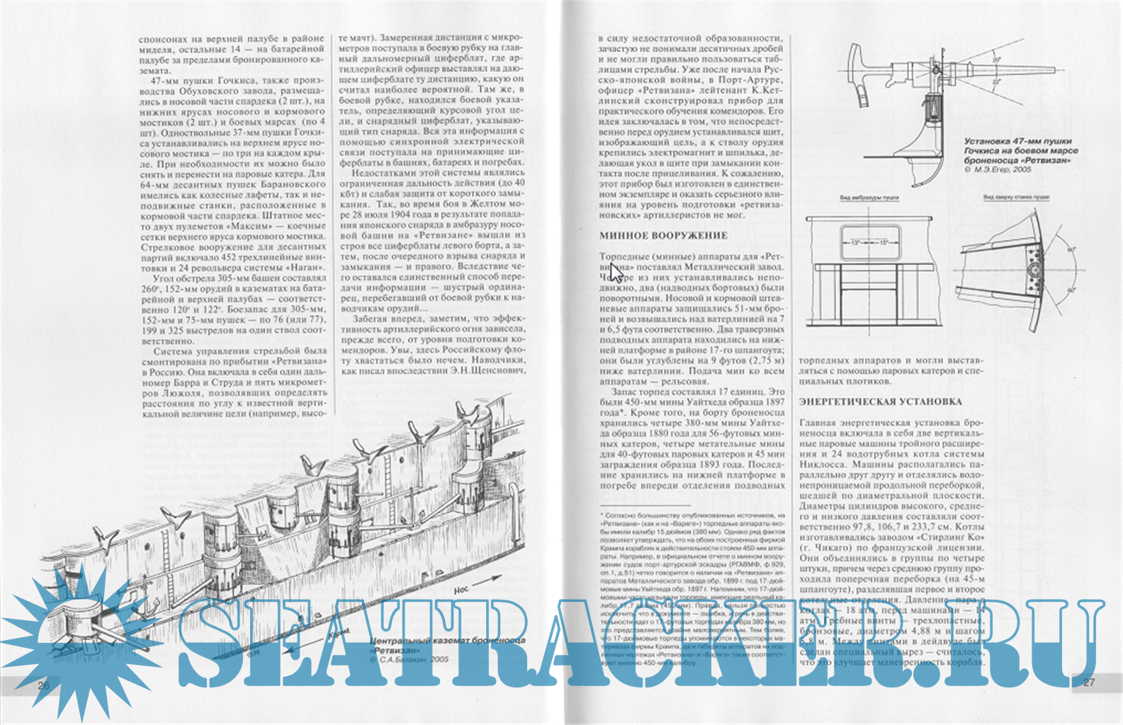 Описание: Книга, открывающая новую серию иллюстрированных военно-исторических монографий "Арсенал коллекция", посвящена эскадренному броненосцу Российского Императорского флота "Ретвизан" - лучшему кораблю своего класса периода Русско-японской войны 1904 - 1905 гг. Подробно изложена история создания броненосца и его службы, приводятся чертежи и многочисленные фотографии.