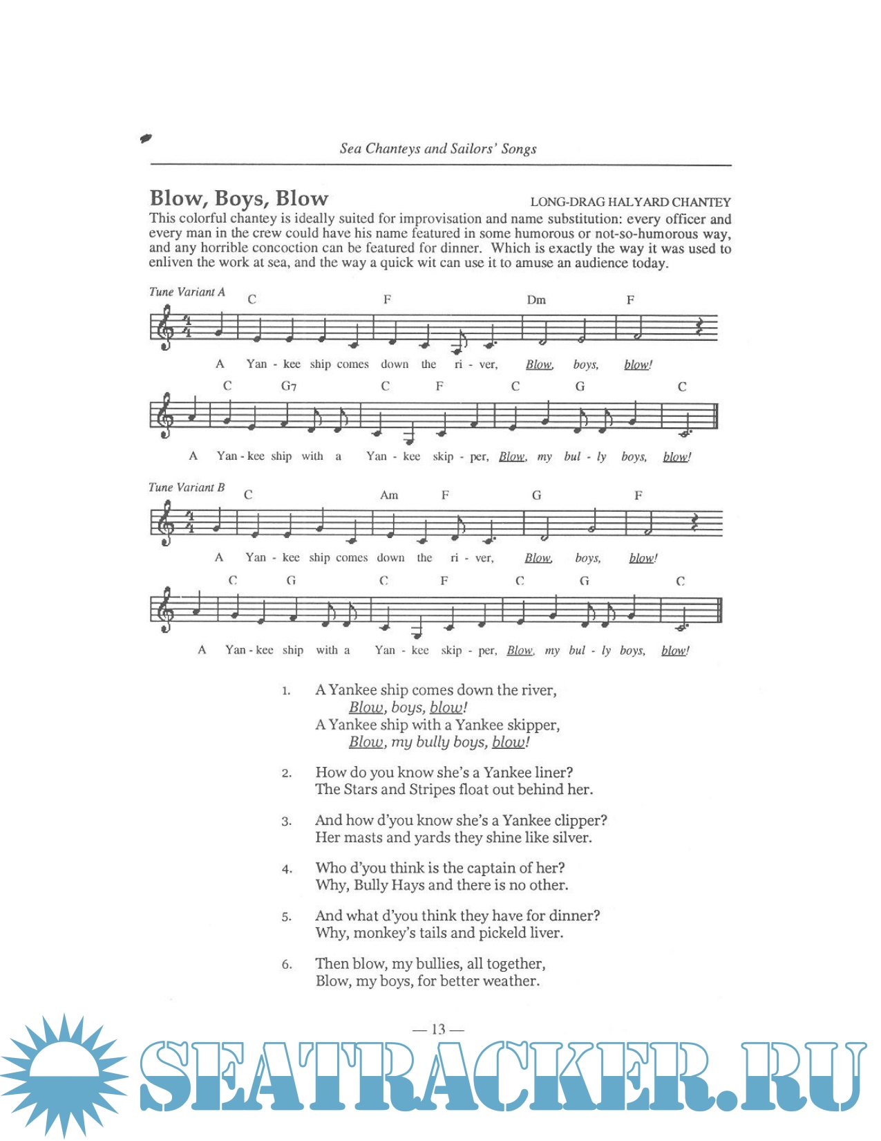Year: 2000 Language: english Author: Frank S.M. Genre: History Publisher: Kendall Whaling Museum ISBN: 0937854360 Format: PDF Quality: Scanned pages Pages count: 37 Description: Sea Chantey's and Sailor's Songs.