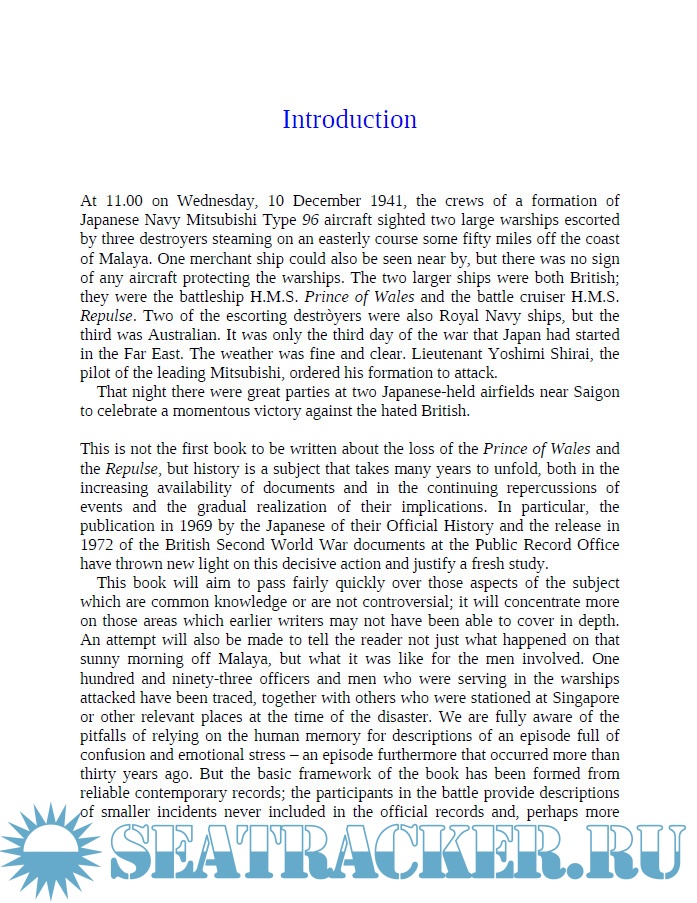 Year: 2004 Language: english Author: Martin Middlebrook & Patrick Mahoney Genre: History Publisher: Pen & Sword Maritime ISBN: 978 1 84415 075 5 Format: PDF Quality: eBook Pages count: 314 Description: On the third day of the war with Japan, two Royal Navy capital ships were sunk off Malaya by air torpedo attack. They had not requested the air support that could have saved them and 840 men died in the battleship HMS Prince of Wales and the battle cruiser HMS Repulse. The authors re-create for the reader not only what happened, but also what it was like for the men involved. They dispose of several myths to explain the events of those confused hours, and address the uncertainty, controversy and strong emotions that surrounded the militarily disastrous sinkings.