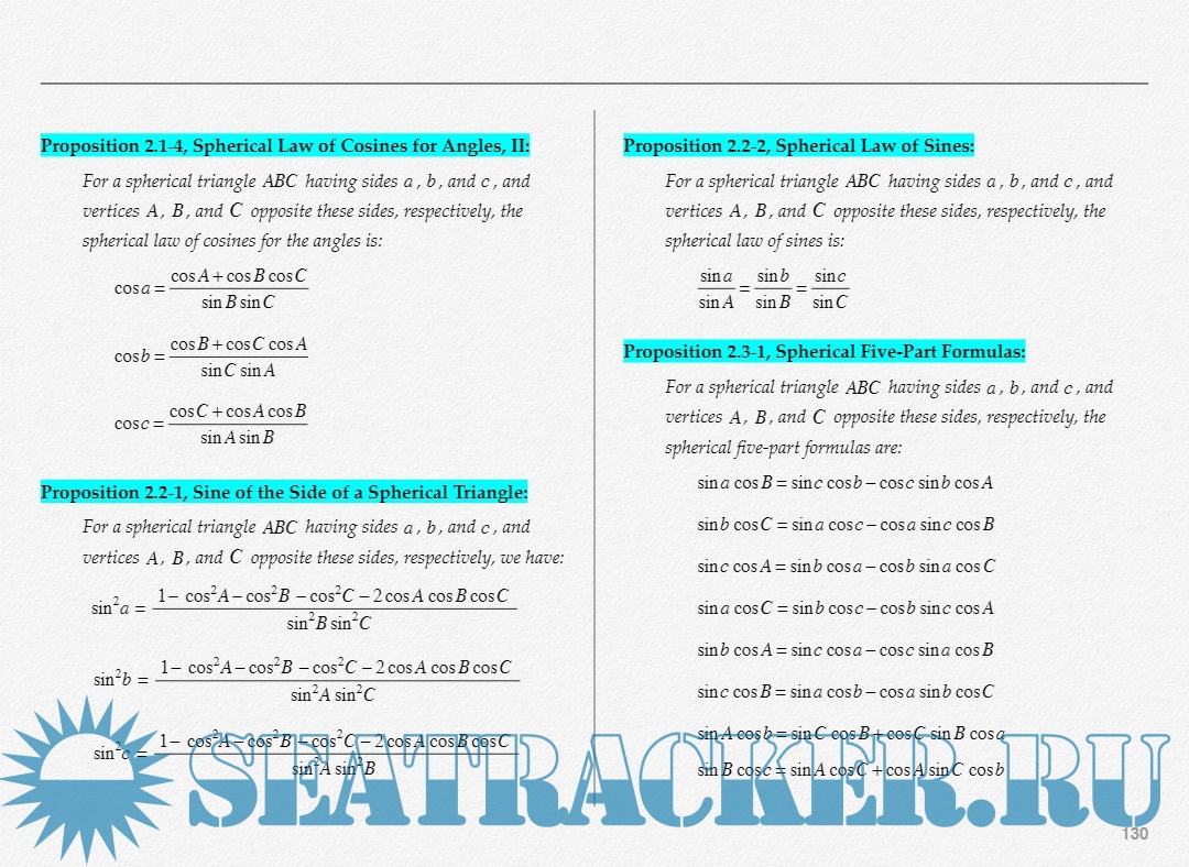 Description: Spherical trigonometry is the mathematics of triangles on the surface of a sphere. Development of spherical trigonometry has a long history, having found early application in the fields of astronomy, navigation, and geodesy.