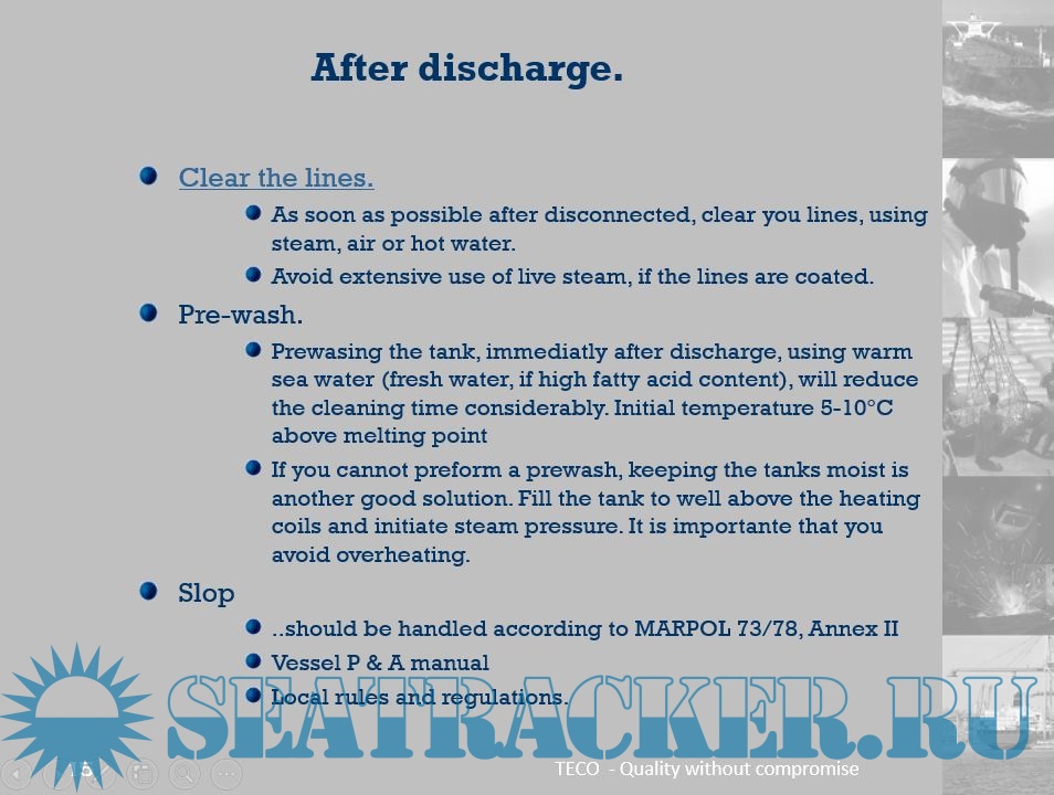 Year: 19xx Language: English Author: Capt. Lasse Didriksen Genre: Training courses Publisher: Teco Maritime AS Format: PPT Quality: eBook Pages count: 22 Description: Carrying vegetable oils can be as easy as you make it, or as difficult as it gets. There are, compared to a regular CPP or DPP voyage, some issues to take into consideration when preparing for loading, discharging and last but not least cleaning after vegetable and animal oils and fats. Handling Veg. oil is not rocket science. It is just a matter of being prepared, having a plan and stick to it. If things are going wrong make sure you have a plan for that as well.