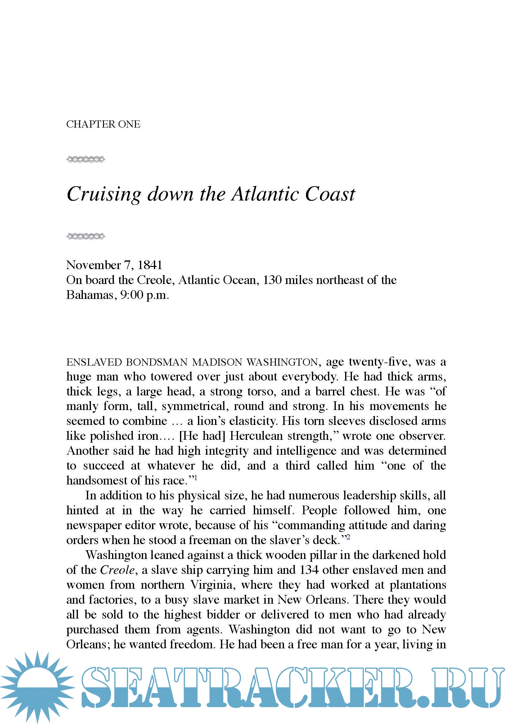 Description: The Creole Rebellion tells the suspenseful story of a successful mutiny on board the slave ship Creole. En route for a New Orleans slave-auction block in November 1841, nineteen captives mutinied, killing one man and injuring several others. After taking control of the vessel, mutineer Madison Washington forced the crewmen to sail to the Bahamas. Despite much local hysteria upon their arrival, all of the 135 slaves aboard the ship won their freedom there.