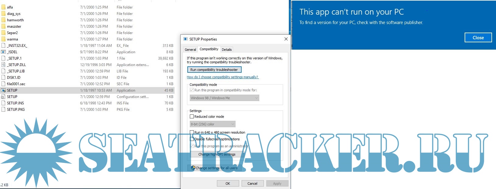 I have successfully mounted it, but when i open SETUP, windows just announce that " This app cannot run on your PC etc. ". I have tried to change the combatility (switch to XP/win7 etc. ) I am still getting the same blue pop up :(
