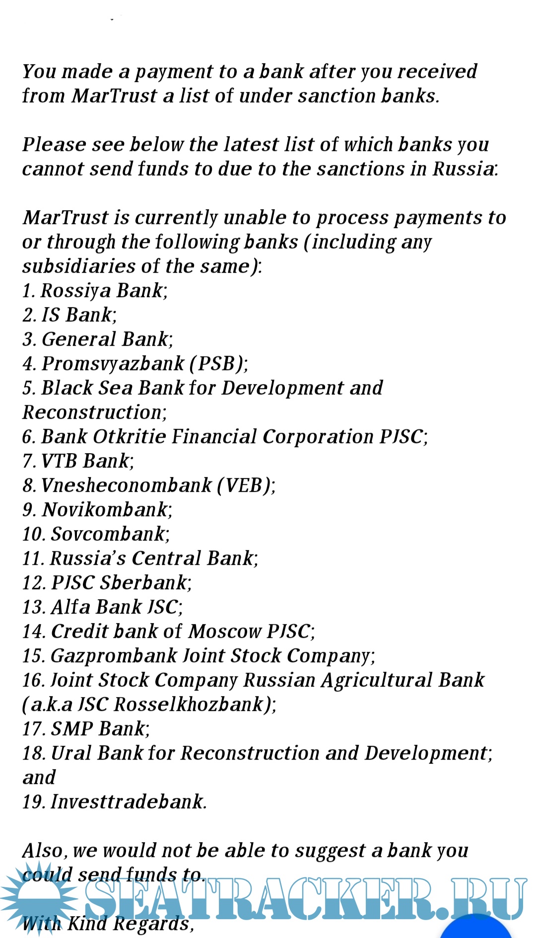 85069 список банков куда не перевести с мартраста