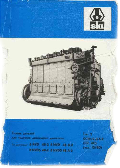 Описание: Список деталей для судового дизельного двигателя 8NVD 48-2, 8NVD 48-A-2, 8NVDS 48-2 и 8NVDS 48-A2. Дизели типа NVD нашли широкое применение на судах флота рыбной промышленности, но значительное их количество, более 1500 штук, было установлено на судах морского и речного флота. Самые распространенные модели судовых дизельных двигателей: 8 NVD 36-1U, 6 NVD 48 A-2 и 8 NVD 48 A-2 Они используются на промысловых судах зарубежной и отечественной постройки в качестве главных и вспомогательных двигателей с различными схемами машинно-двигательного комплекса (прямая или дизель-редукторная передача, без отбора и с отбором мощности, с ВНП и ВФШ). В связи с многообразием типоразмеров и модификации дизелей этого типа, выпускаемых заводом тяжёлого машиностроения имени К. Либкнехта (SKL) в г. Магдебурге (ГДР), возникла необходимость систематизации и обобщения их характеристик и конструктивных особенностей.