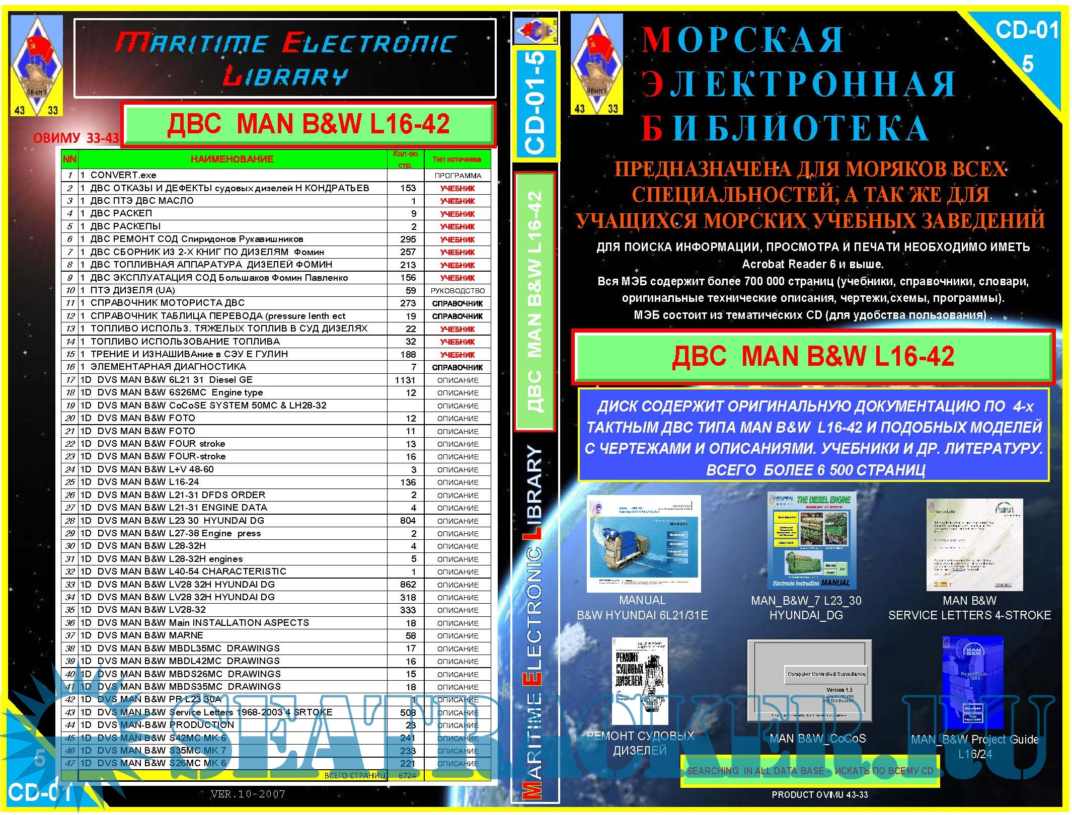 ДИСК СОДЕРЖИТ ОРИГИНАЛЬНУЮ ДОКУМЕНТАЦИЮ ПО 4-х ТАКТНЫМ ДВС ТИПА МAN B&W L16-42 И ПОДОБНЫХ МОДЕЛЕЙ С ЧЕРТЕЖАМИ И ОПИСАНИЯМИ. УЧЕБНИКИ И ДР. ЛИТЕРАТУРУ.