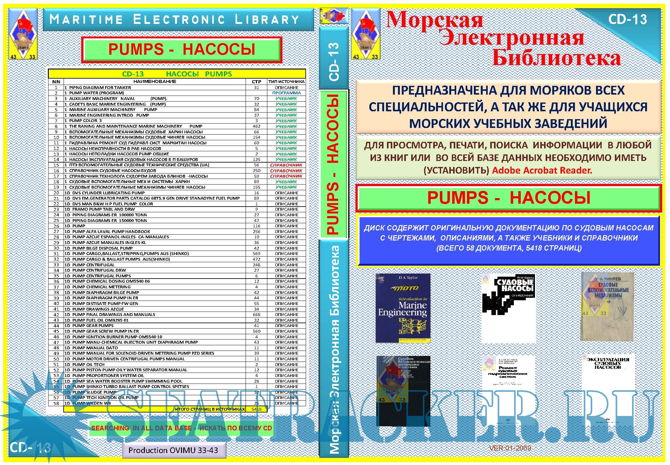 Year: 2009 Language: russian / english Author: ERMO83 Publisher: OVIMU 33-43 Edition: 2009 Format: PDF Quality: Scanned pages + text layer Pages count: 5418 Description: PUMPS- MANUALS, DROWINGS, BOOKS ДИСК СОДЕРЖИТ ОРИГИНАЛЬНУЮ ДОКУМЕНТАЦИЮ ПО СУДОВЫМ НАСОСАМ С ЧЕРТЕЖАМИ, ОПИСАНИЯМИ, А ТАКЖЕ УЧЕБНИКИ И СПРАВОЧНИКИ (ВСЕГО 58 ДОКУМЕНТА, 5418 СТРАНИЦ)