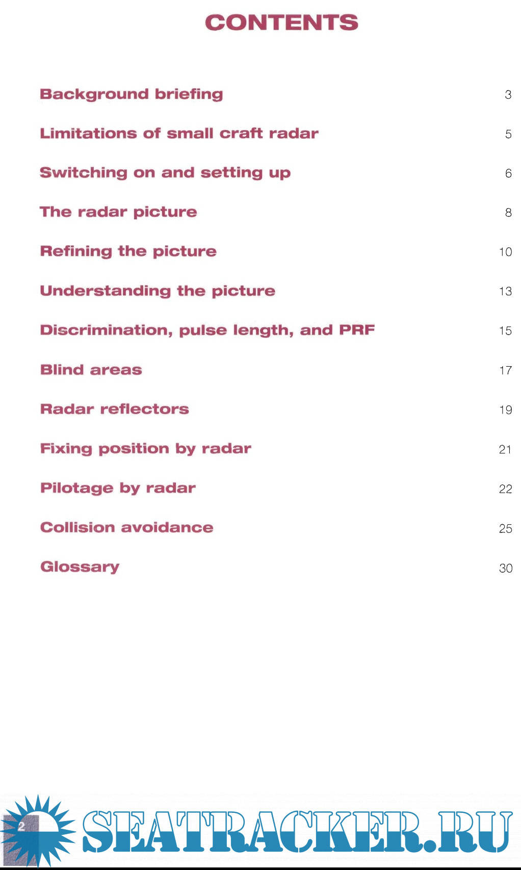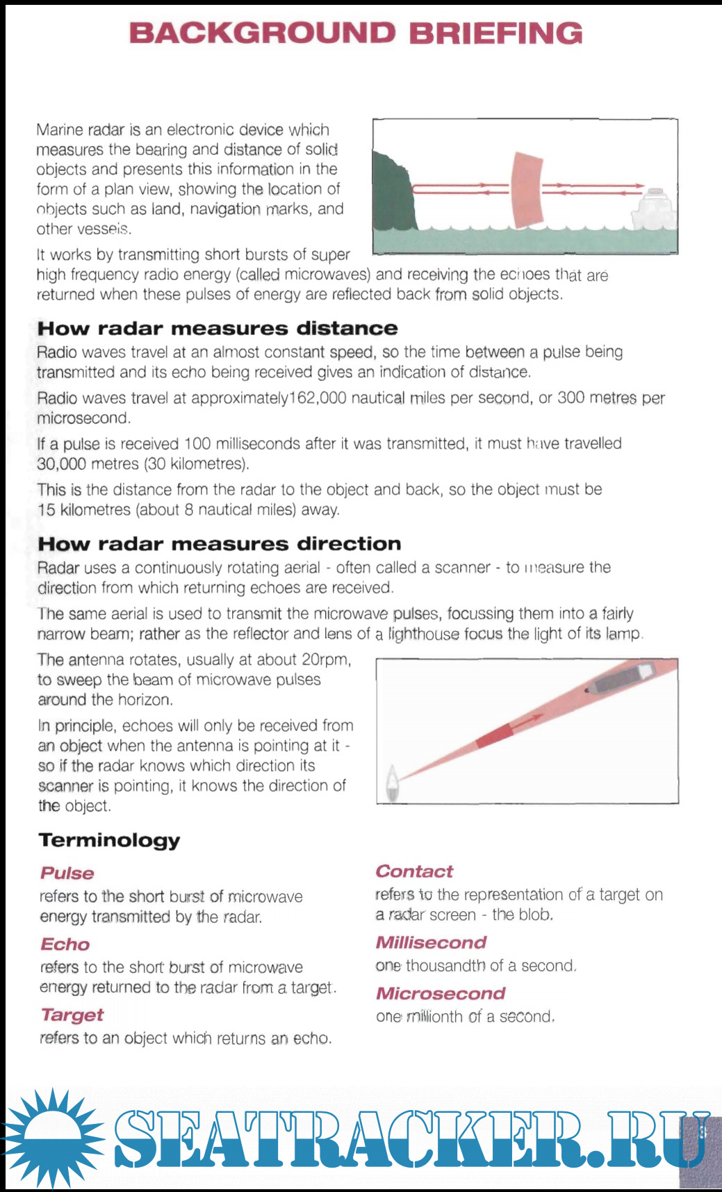 Description: Marine radar is an electronic device which measures the bearing and distance of solid objects, and presents this information in the form of a map-like diagram, showing location of objects such as land, navigation marks, and other vessels. This introduction is a good primer and also a handy reference for the experienced.