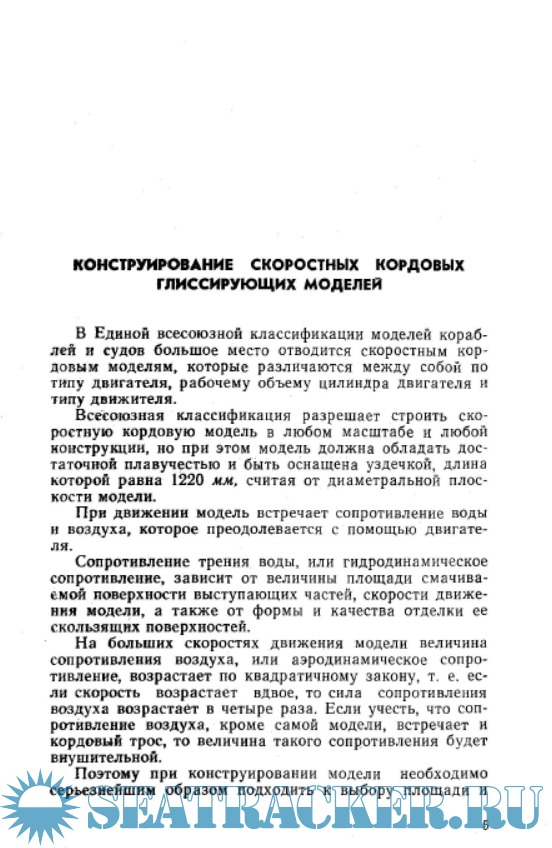Описание: Эта книга рассказывает в популярной и доступной широким кругам форме о конструировании скоростных судов. Судомодельный спорт пользуется большой популярностью среди молодежи нашей страны. Книга призвана познакомить спортсмена с правилами черчения, с элементами теории корабля, с гидродинамикой и аэродинамикой судов. Занимаясь конструированием и изготовлением моделей судов, судомоделист приобретает теоретические познания и практический опыт, учится технически правильно решать вопросы проектирования моделей, вести работу по форсированию серийных моторов и усовершенствованию их узлов. Изготовление модели требует от моделистов навыков работы на металлорежущих станках, умения пользоваться инструментами и приборами, а также различными строительными материалами. Весь этот комплекс знаний и навыков помогает нашей молодежи правильно выбрать свою будущую специальность. В книге описаны скоростные кордовые модели с гребным винтом и двигателем внутреннего сгорания рабочим объемом цилиндра до 2,5 см3, от 2,5 до 5 см3, от от 5 до 10 см3, приводится чертеж модели с двигателем 2,5 см3 с воздушным винтом, даются практические рекомендации по конструированию и постройке скоростных кордовых глиссирующих моделей судов и их двигателей.