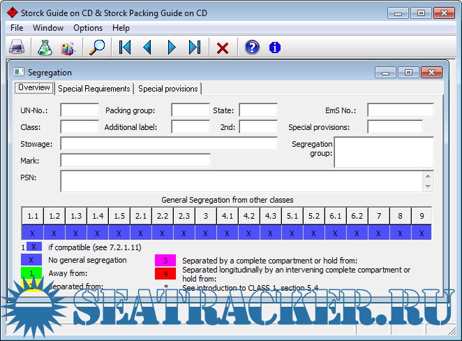 Описание: Программа для сегрегации опасного груза в контейнерах (как модуль работает с программой Easeacon) в соответствии с требованиями конвенции МОПОГ/IMDG Code с поправками 2008 года