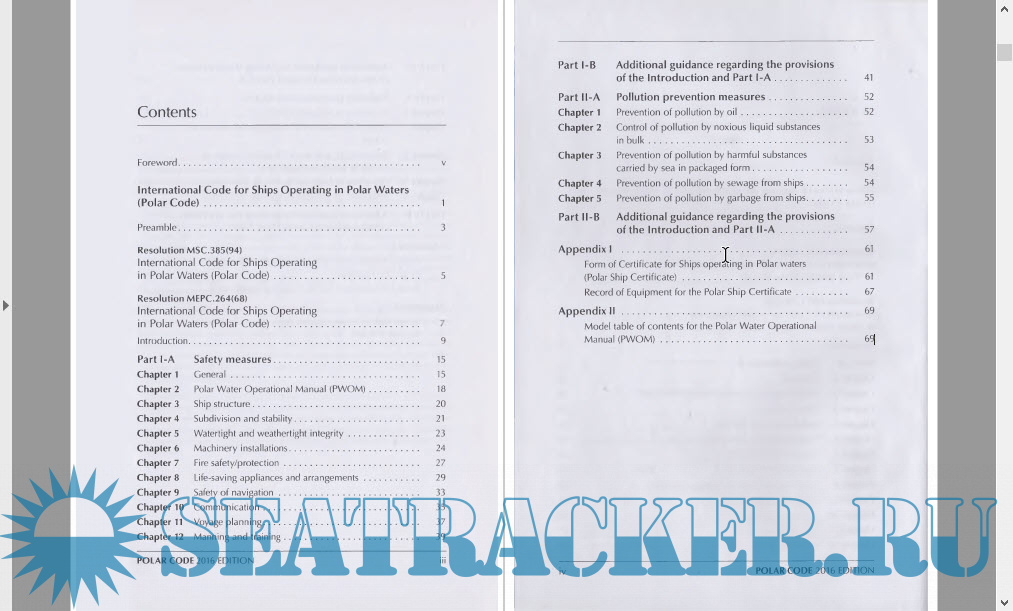 Year: 2016 Language: english Author: International Maritime Organization Genre: Practical guide Publisher: International Maritime Organization ISBN: 978-92-801-1628-1 Format: PDF Quality: Scanned pages + text layer Number of pages: 83 Description: The Polar Code has been developed to supplement existing IMO instruments in order to provide a more comprehensive set of provisions to address the increased interests and traffic in the polar regions, and the unique operational environmental and search and rescue concerns peculiar to these areas, taking into account that the consequences of any major safety or pollution incident in polar waters are likely to cause widespread harm to these pristine environments.