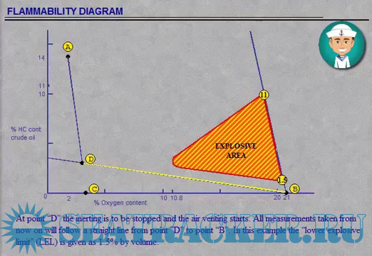 Year: 2016 Language: english Genre: Learning Video Playtime: 11:01 Quality: CamRip Format: MP4 Video: 640x360 / 247 kbps / 16:9 Audio: 96 kbps / 44.1 KHz Description: The learning objectives of this video section are to familiarize all personnel involved in tank atmosphere control with: The use of the flammability composition diagram. Understand the upper and lower explosive limits. Be fully aware of the company policy regarding tank atmosphere handling.