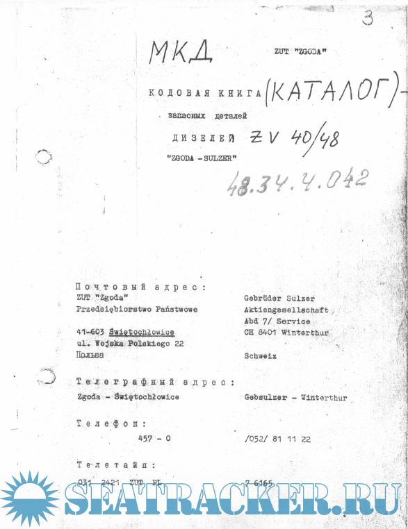 Sulzer 16ZV 40/48 , Руководство на дефектацию и ремонт, ТЕХНИЧЕСКИЕ УСЛОВИЯ НА РЕМОНТ, Ходова книга - КАТАЛОГ