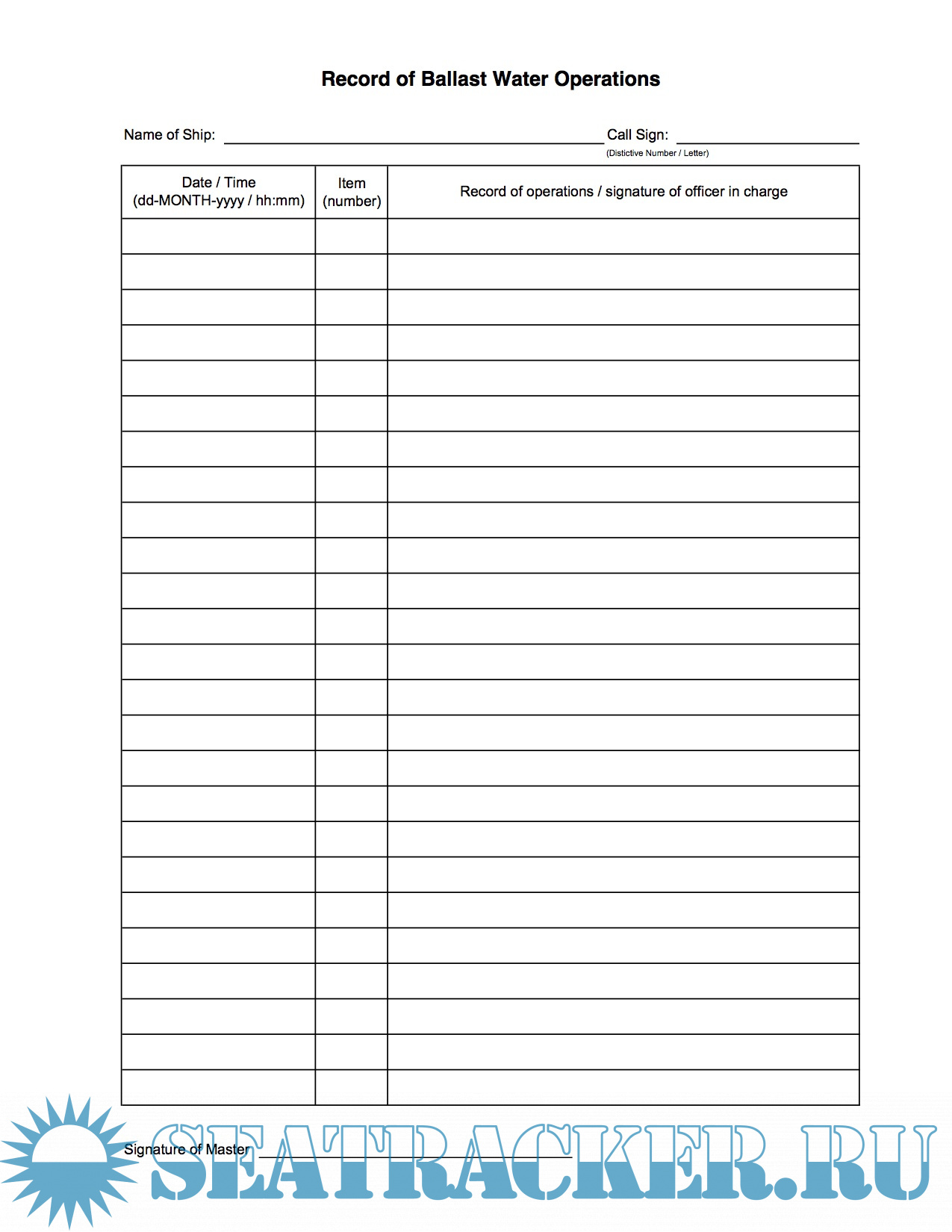 Ballast Water Record Book | Company Template - Unknown [2023, PDF]