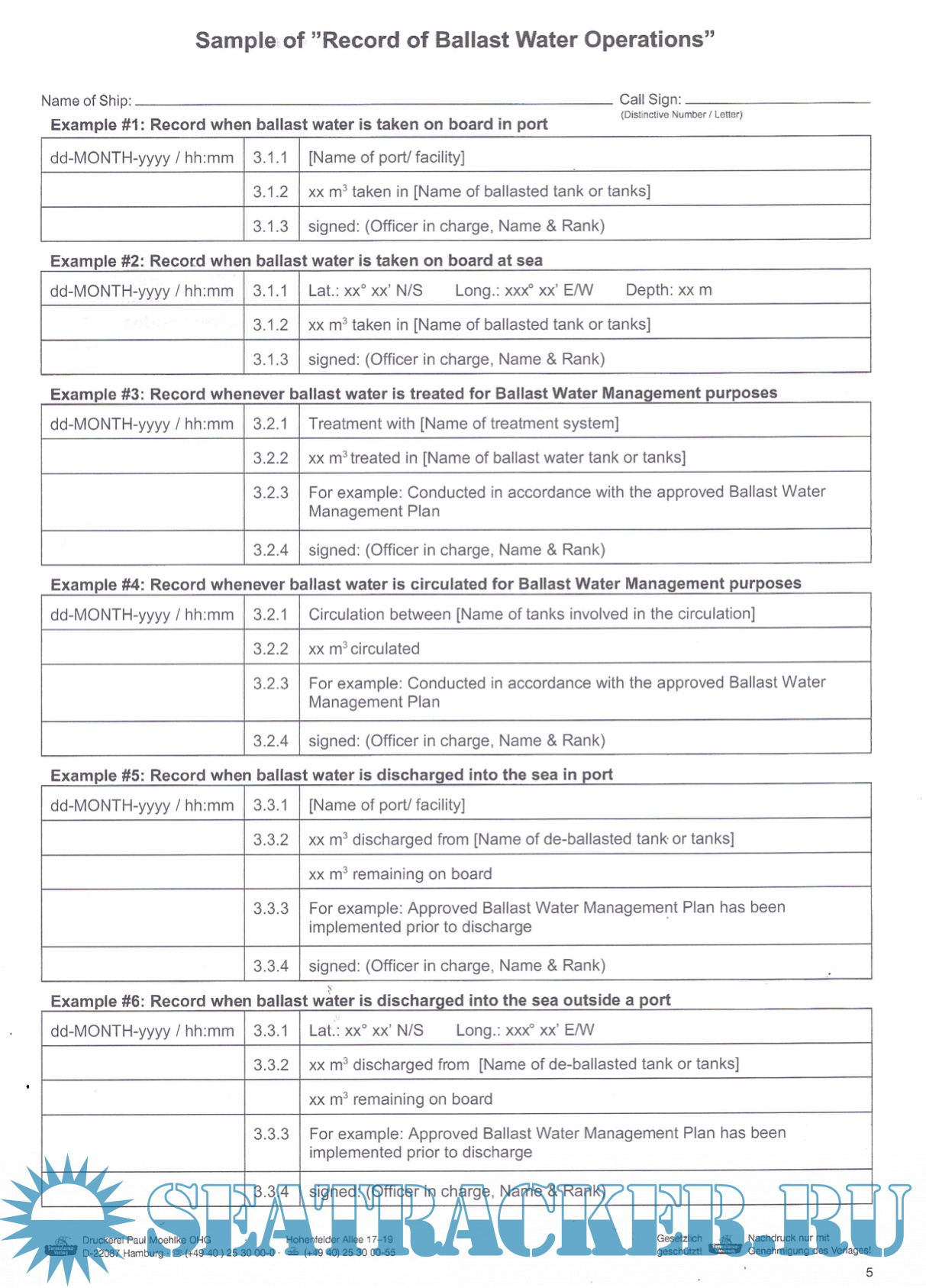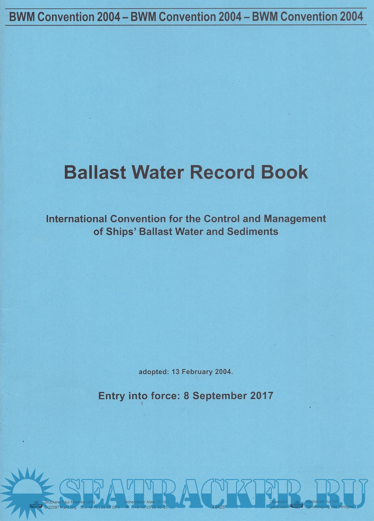 Ballast Water Record Book 2017 + New Ruls from 08.09.2017 + BWM Convention 2004