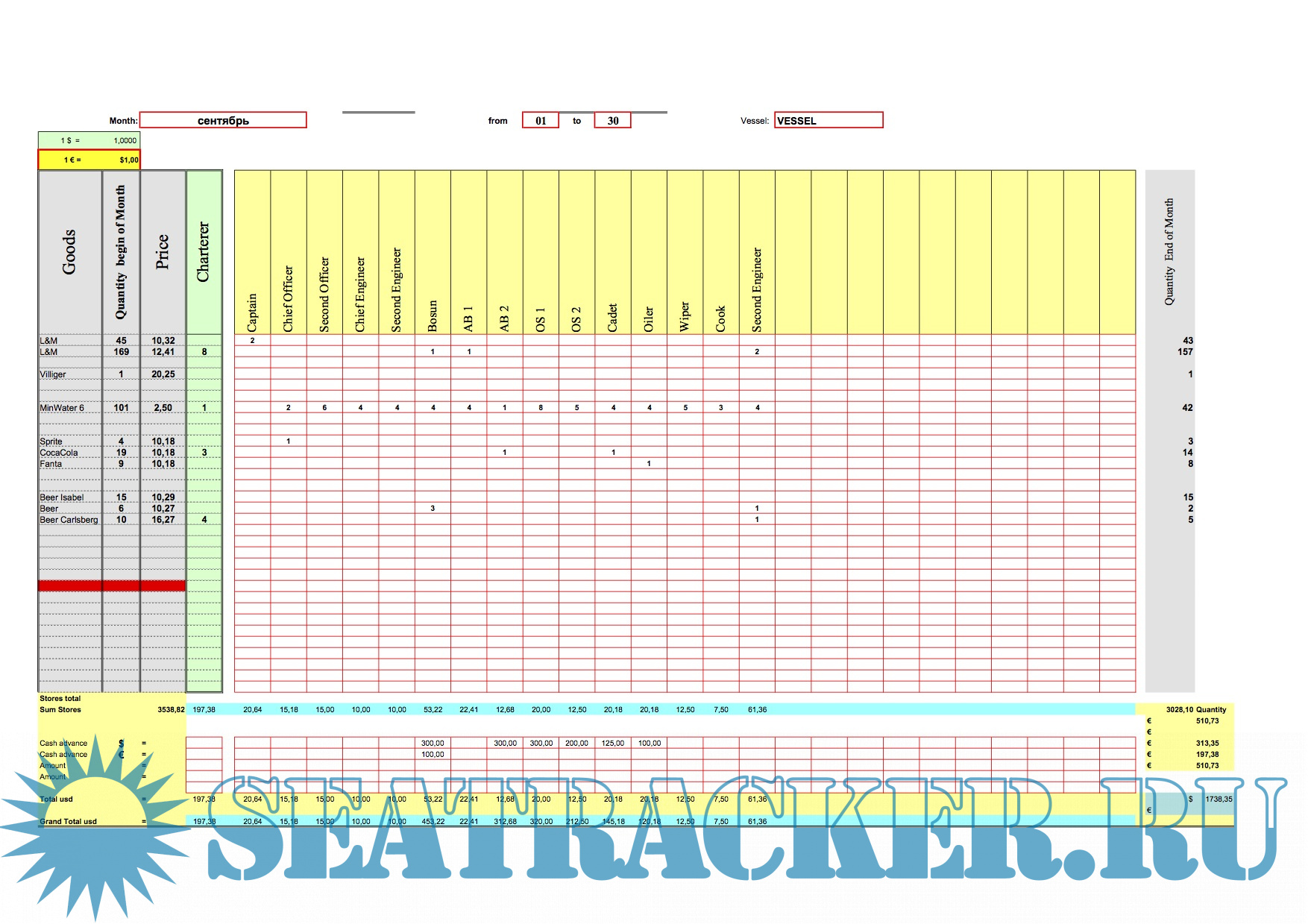 Year: 2017 Version: 1.0 Developer: Капитан Platform: Windows System Requirements: Microsoft Office любой версии Localization: english Crack: Not needed Description: Программа для расчета Bonded Stores. Месячные отчеты в Marlow Navigation и судовладельцу