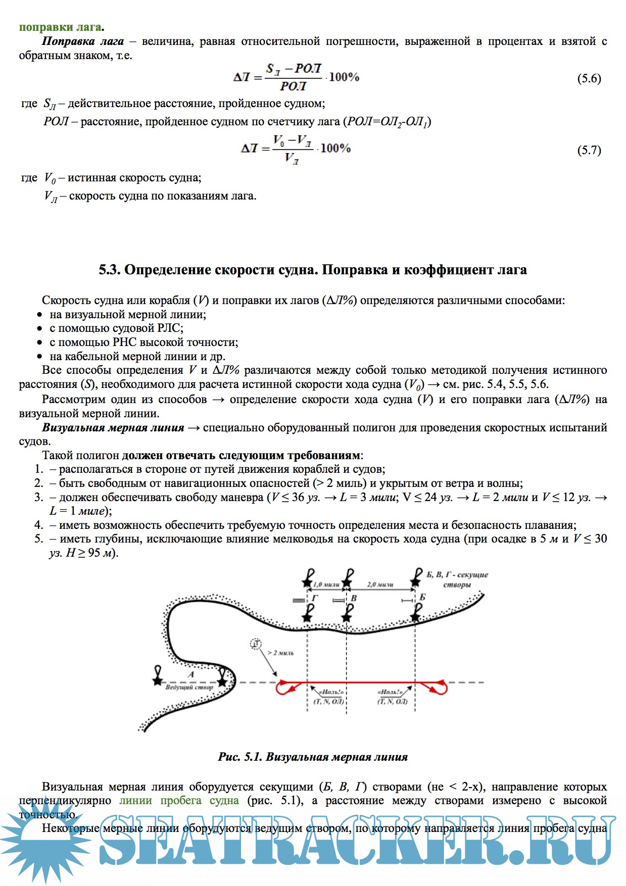 5.3. Определение скорости судна. Поправка и коэффициент лага 5.4. Определение пройденного судном расстояния