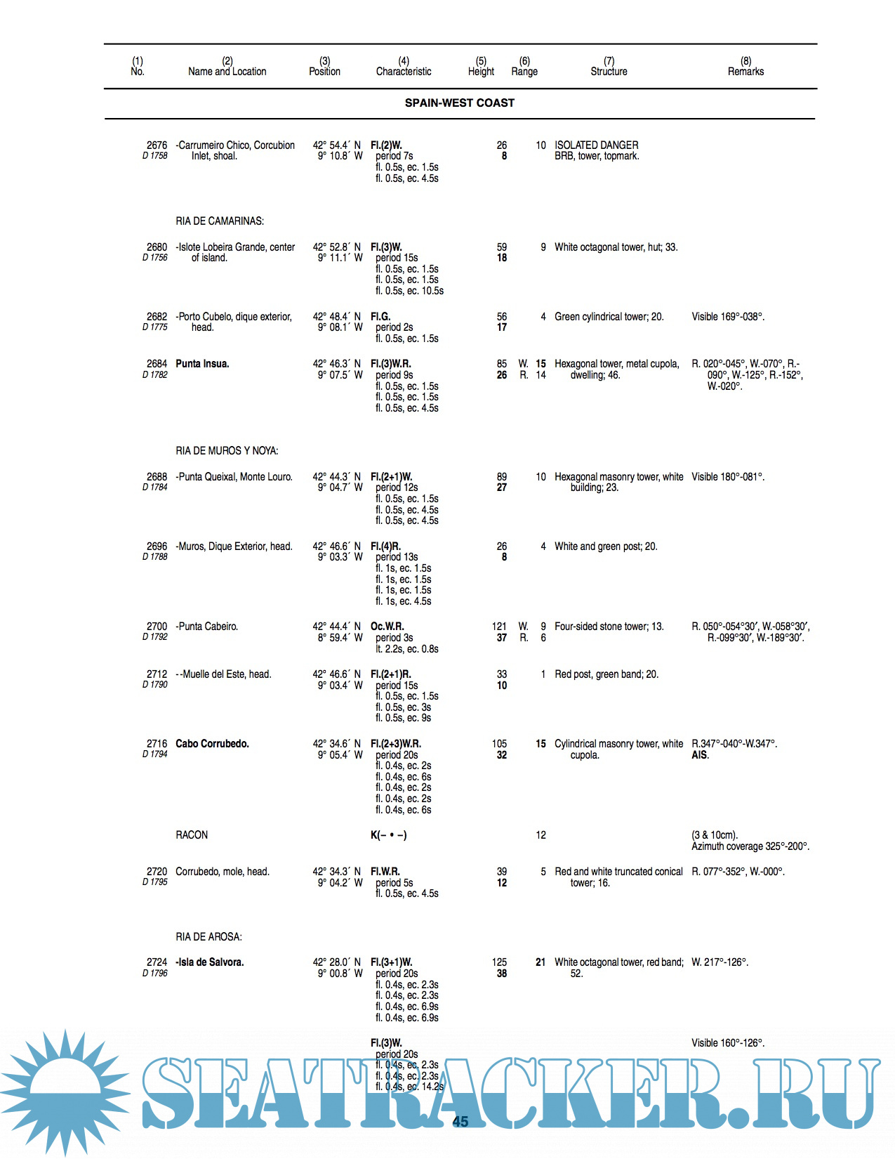 Description: The List of Lights, Radio Aids and Fog Signals is published in seven volumes, as Publication numbers 110 through 116. Each volume contains lights and other aids to navigation that are maintained by or under the authority of foreign governments.