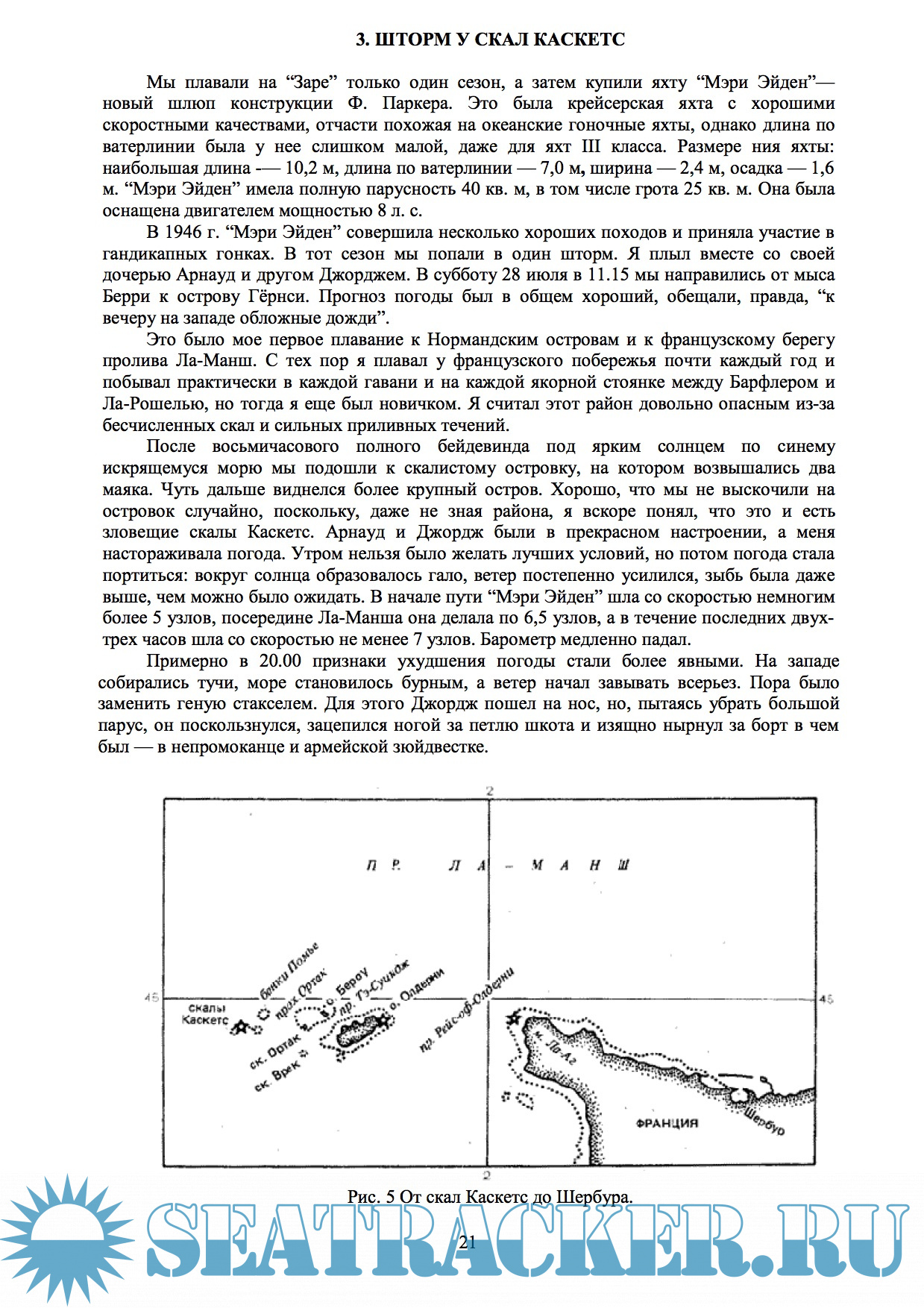 Год выпуска: 1985 Язык: русский Автор: К. Адлард Колс Жанр: Другое Издательство: Гидрометеоиздат Формат: PDF Качество: Распознанный текст без ошибок (OCR) Количество страниц: 172 Описание: В книге рассказывается о длительных походах под парусом и многодневных соревнованиях крейсерско-гоночных яхт, в которых принимал участие сам автор и другие яхтсмены. Из всего многообразия эпизодов, происходящих во время плавания под парусом, отобраны наиболее драматические - борьба яхты с разбушевавшейся стихией ветра и волн. Книга интересна не только яхтсменам и людям, профессионально связанным с морем, - они найдут здесь много полезных сведений об управлении яхтой во время шторма, причинах различных аварий и т. п., - но и широкому кругу читателей, которых привлечет описание штормов по впечатлениям яхтсменов и захватывающие фотографии. Эта книга посвящена плаванию под парусом в плохую погоду. Под плохой погодой я подразумеваю свежий ветер силой 5 баллов по шкале Бофорта, сильный и крепкий ветер силой 6—7 баллов, очень крепкий ветер силой 8 баллов и штормовой ветер силой 9 баллов и более. В каждой главе вначале приводится описание шторма, затем следуют результаты наблюдений и выводы. Глава о метеорологии циклонов написана Аланом Уотсом, метеорологом и яхтсменом. В ней рассматриваются некоторые характерные штормы и причины их возникновения. В приложениях “Теория волн и данные наблюдений” капитана Стюарта и “Ненормальные волны” Л. Дрейпера дается объяснение многих явлений, описанных в книге.