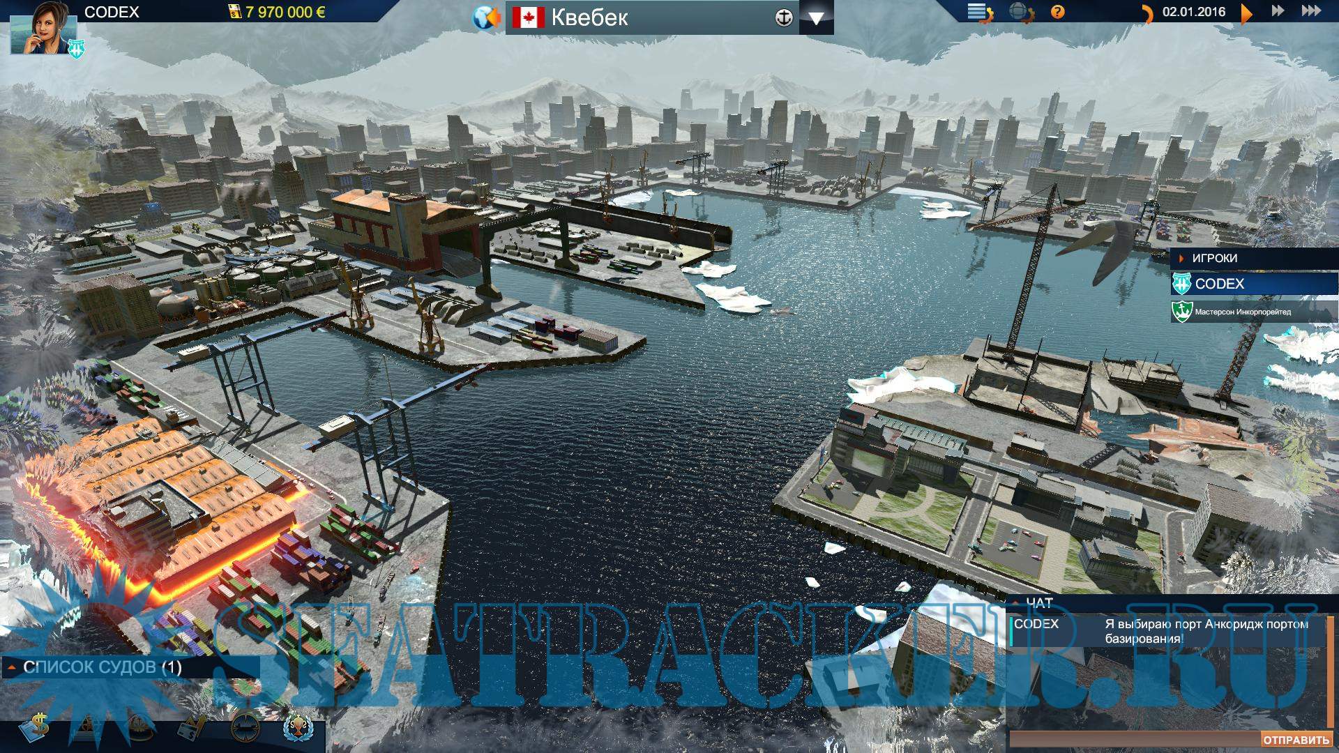Год выпуска: 2016 Версия: 1.0.8 Разработчик: Deck13 Hamburg Платформа: Windows Совместимость с 64-битными ОС: да Системные требования: ОС: Windows 7 и выше (только 64 бита!) Процессор: Intel Core i3-2120 и лучше Память: 4 Гб Видео: Geforce GTX 260 / Radeon HD 4850 или лучше DirectX: 10 Место на диске: 7 Гб Язык интерфейса: русский / english Таблэтка: Вшита Описание: Если вы всегда хотели управлять своим бизнесом, распоряжаться крупными суммами денег, и хотите стать предпринимателем, тогда компьютерная игра TransOcean 2 Rivals даст вам возможность потренироваться в виртуальном мире, чтобы избежать банкротства в реальности, если начнете воплощать свою мечту. В данном проекте создатели постарались соединить и воплотить все возможные условия ведения бизнеса, с возможными препятствиями и проблемами. Хотите поиграть? В таком случае вам необходимо скачать игру TransOcean 2 Rivals торрент, и попробовать себя в роли успешного бизнесмена.