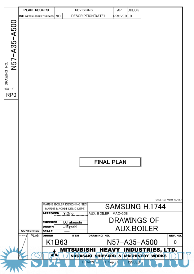 Description: Mitsubishi Auxiliary Boiler Type MAC-35B Final Plan, Instruction & Operators Manual
