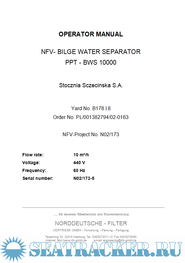 Description: NFV – Bilge Water Separator Type PPT-BWS 10000 Technical Documentation.