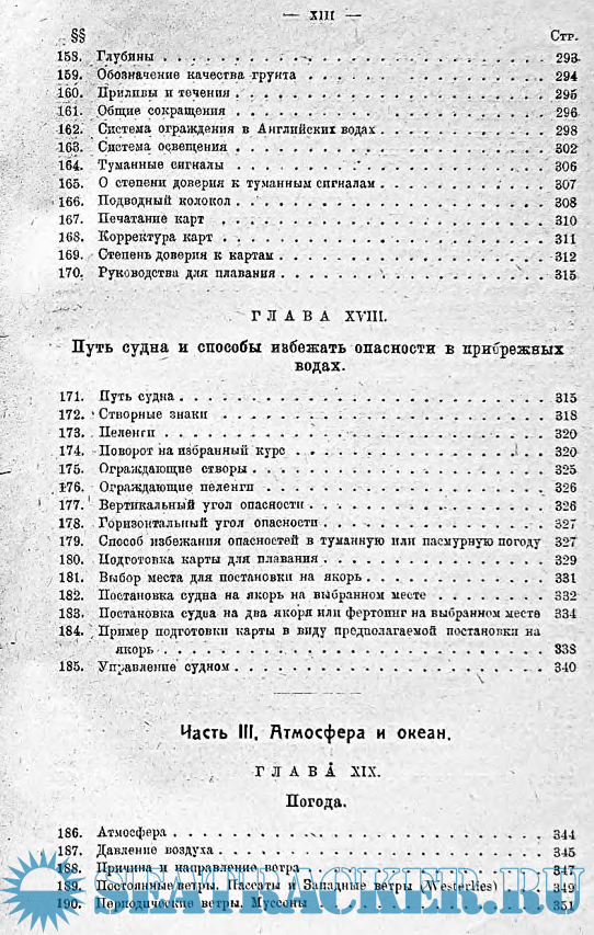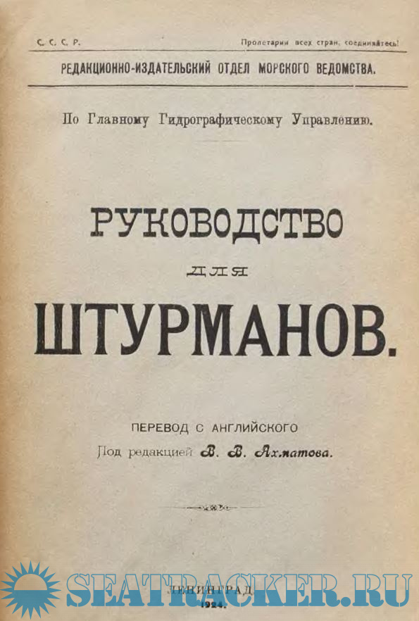 По этим причинам, когда в 1920 г. в руках Главного Гидрографического Управления оказалось подобное руководство, составленное по поручению Английского Адмиралтейства, было решено сделать его полный перевод. Мировой опыт английских моряков позволял надеяться, что такая книга ответит практическим запросам наших мореплавателей и заполнит указанный недостаток."