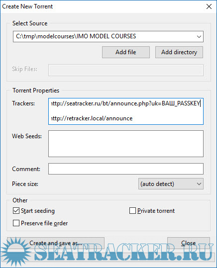 Шаг 3 и 4.Для сохранения торрент-файлов, необходимых для постановки на раздачу, рекомендуется создать на HDD отдельную папку. Называем торрент-файл как Вам удобно и сохраняем его.