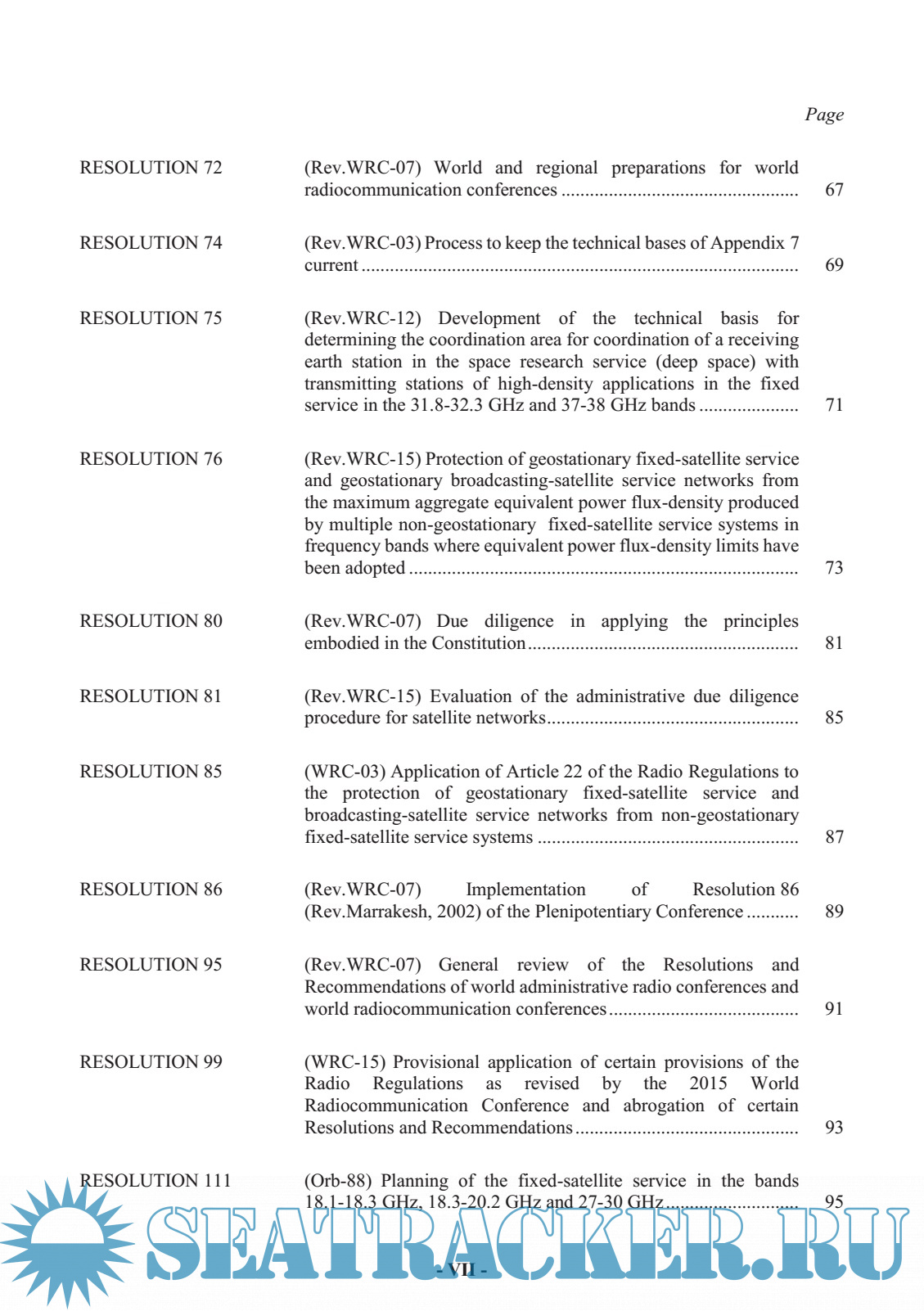 Description: This revision of the Radio Regulations, complementing the Constitution and the Convention of the International Telecommunication Union, incorporates the decisions of the World Radiocommunication Conferences of 1995 (WRC-95), 1997 (WRC-97), 2000 (WRC-2000), 2003 (WRC-03), 2007 (WRC-07), 2012 (WRC-12) and 2015 (WRC-15). The majority of the provisions of these Regulations shall enter into force as from 1 January 2017; the remaining provisions shall apply as from the special dates of application indicated in Article 59 of the revised Radio Regulations.