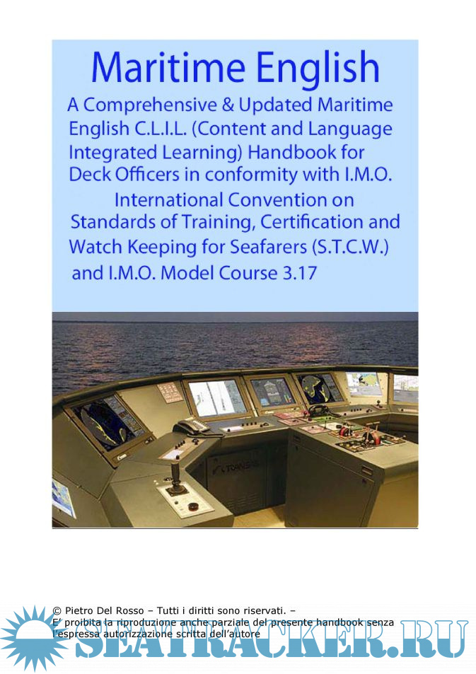 Year: 201X Language: english Author: Pietro del Rosso Genre: Handbook Publisher: Pietro del Rosso Format: PDF Quality: eBook Pages count: 411 Description: Maritime English Content and Language Integrated Learning Handbook for Deck Officers in conformity with IMO International Convention on Standards of Training, Certification and Watchkeeping for Seafarers (STCW) and IMO Model Cource 3.17. Book covers wide range of points, necessary for deck officer's job. All tasks and duties are reflected with simple view to make english studying not difficult.