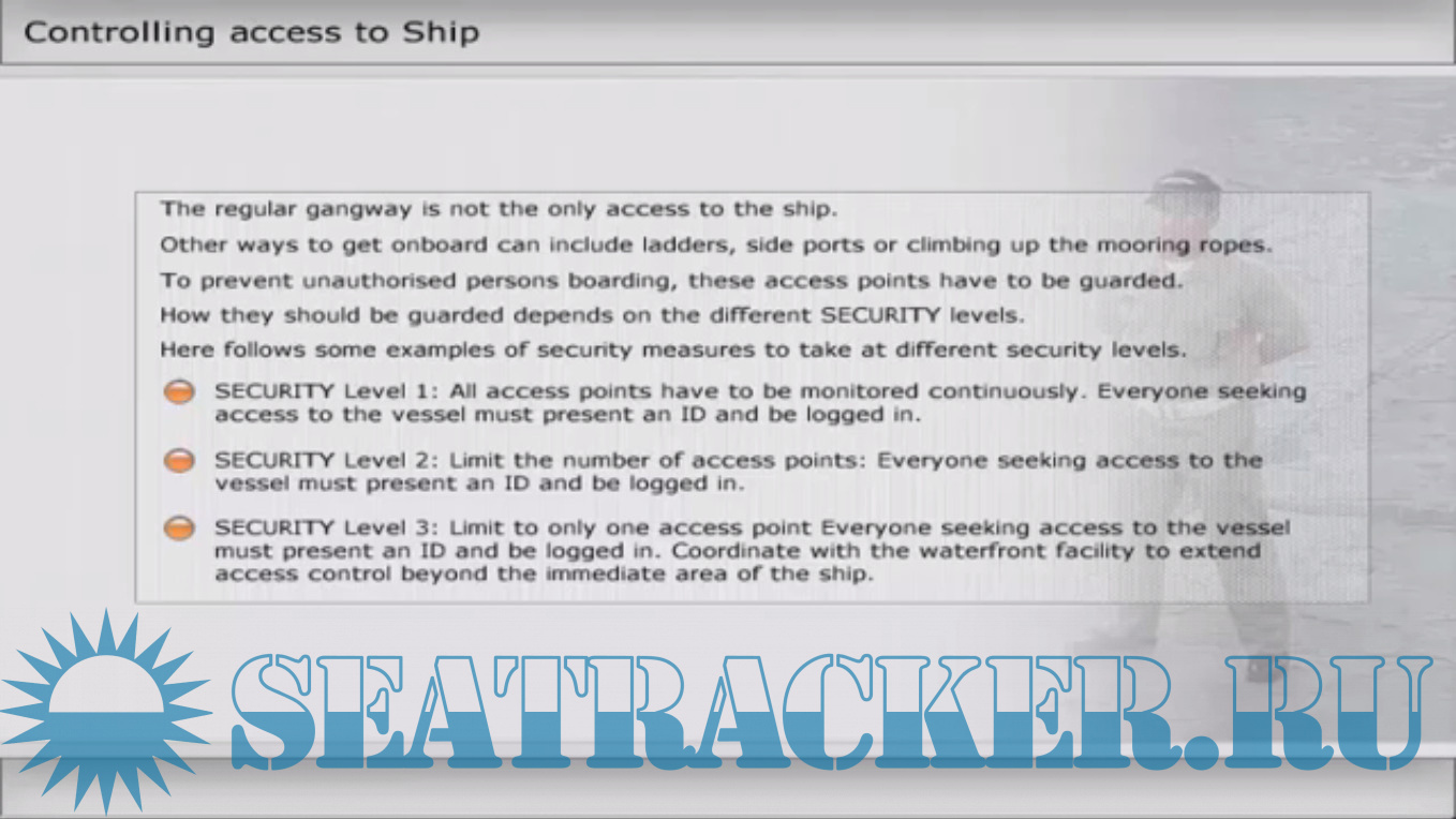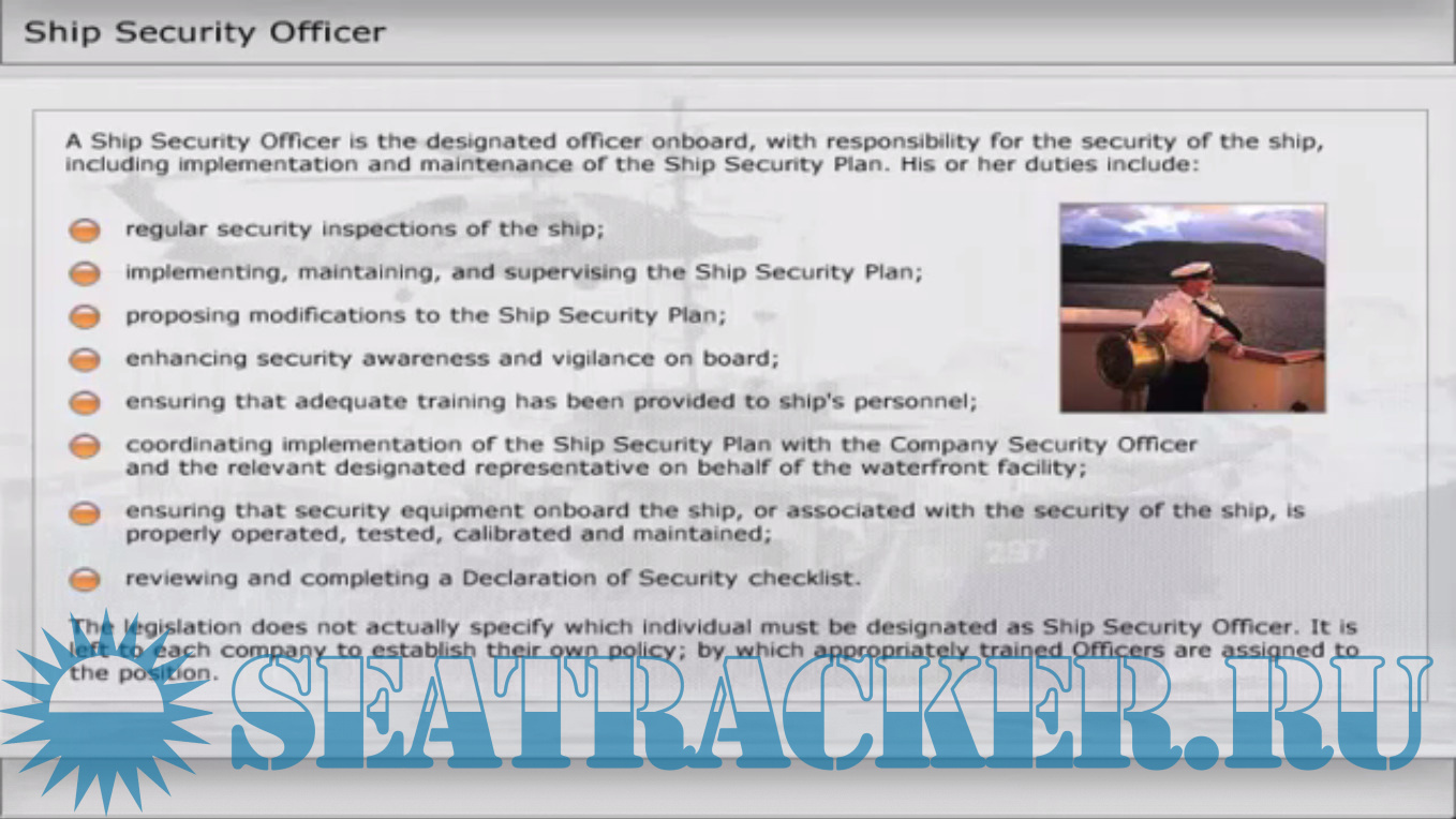 Year: 2018 Language: english Playtime: 31:12 Quality: WEB-DL Format: MP4 Video: 640x360 / 157 kbps / 16:9 Audio: 96 kbps / 44.1 KHz Description: There are 5 training video lessons in this batch: ISPS Code Regulations Ship Security Plans What are the Duties of Ship, Company, and Port Officer Training and Drills Required by the Ship Security Plan Ship Security Measures and Ship Security Levels After successfully completing this video lessons, you : - will be familiar with ISPS Code Ch 11-2, and associated Regulations. - will be familiar with Ship Security Plans - will be familiar with the duties of: • Company Security Officer Responsibilities(CSO) • Ship Security Officer Responsibilities(SSO) • Port Facility Security Officer Responsibilities(PFSO) - will be familiar with the Training and drills required by the Ship Security Plan. - will know what security measures to take at the different Security levels.