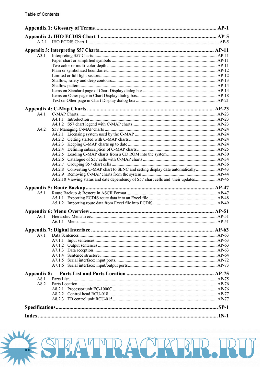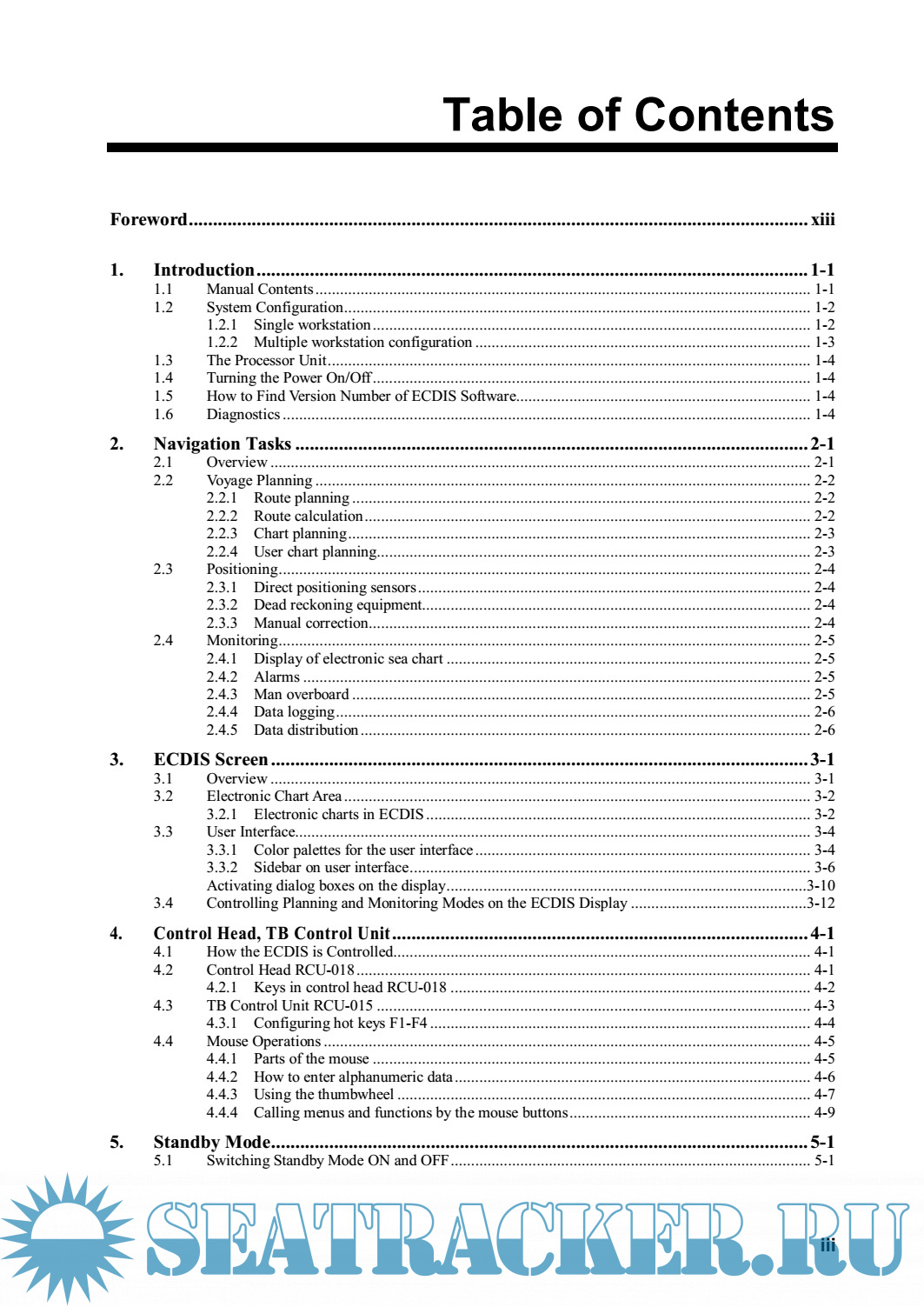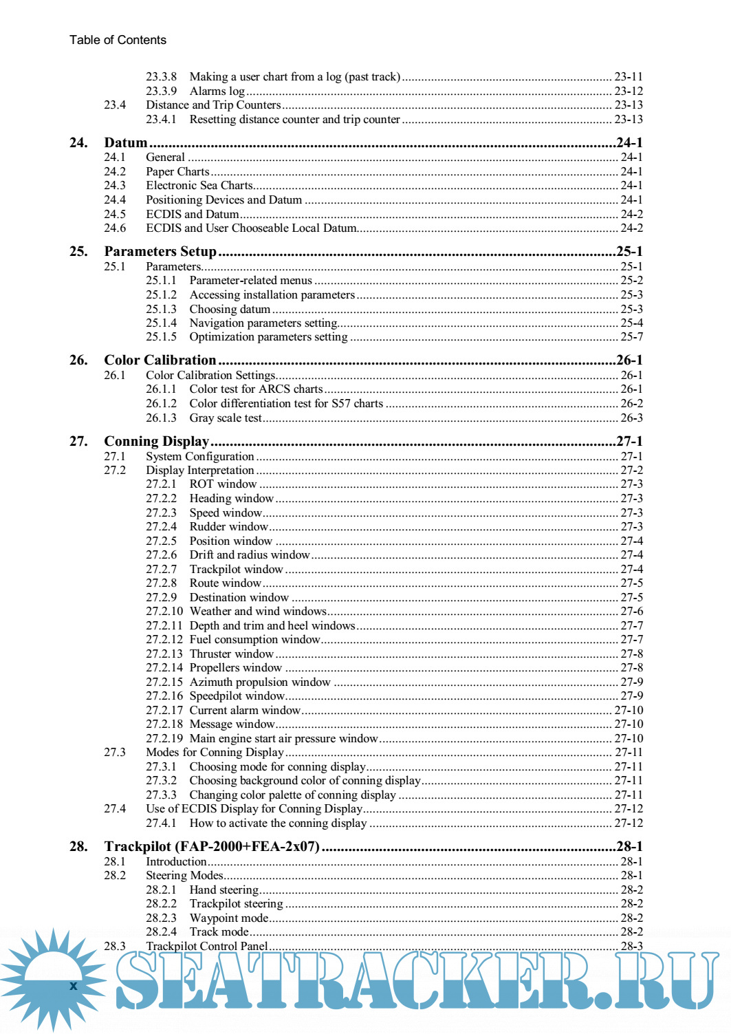 Year: 2005 Language: english Author: Furuno Genre: Manual Publisher: Furuno Edition: B1 Format: PDF Quality: eBook Pages count: 602 Description: The FEA-2x07 series ECDIS is the product of FURUNO’s extensive experience in computer technology and marine electronics. It complies with IMO Resolution A.817(19), IEC 61174 and other related standards. The ECDIS displays electronic charts, nav lines, ARPA data, AIS targets and other navigation data on a high-resolution 20.1- inch (FEA-2107) or 23.1-inch display (FEA-2807). The FEA-2107-BB is supplied without a monitor, permitting use of the commercial monitor of your choice. The main features of the ECDIS are • Continuous monitoring of ship’s position through multi-sensor Kalman filter processing using GPS, DPGS, SDME • Route planning and route monitoring facilities • Wide variety of warning facilities contribute to safer and more efficient navigation • Radar image may be superimposed on electronic charts (option) • Grounding warnings, safe depth contours • Chart database loaded and updated using CD ROMs • Target data from ARPA/radar and AIS transponder to aid collision avoidance. (AIS transponder and ARPA)